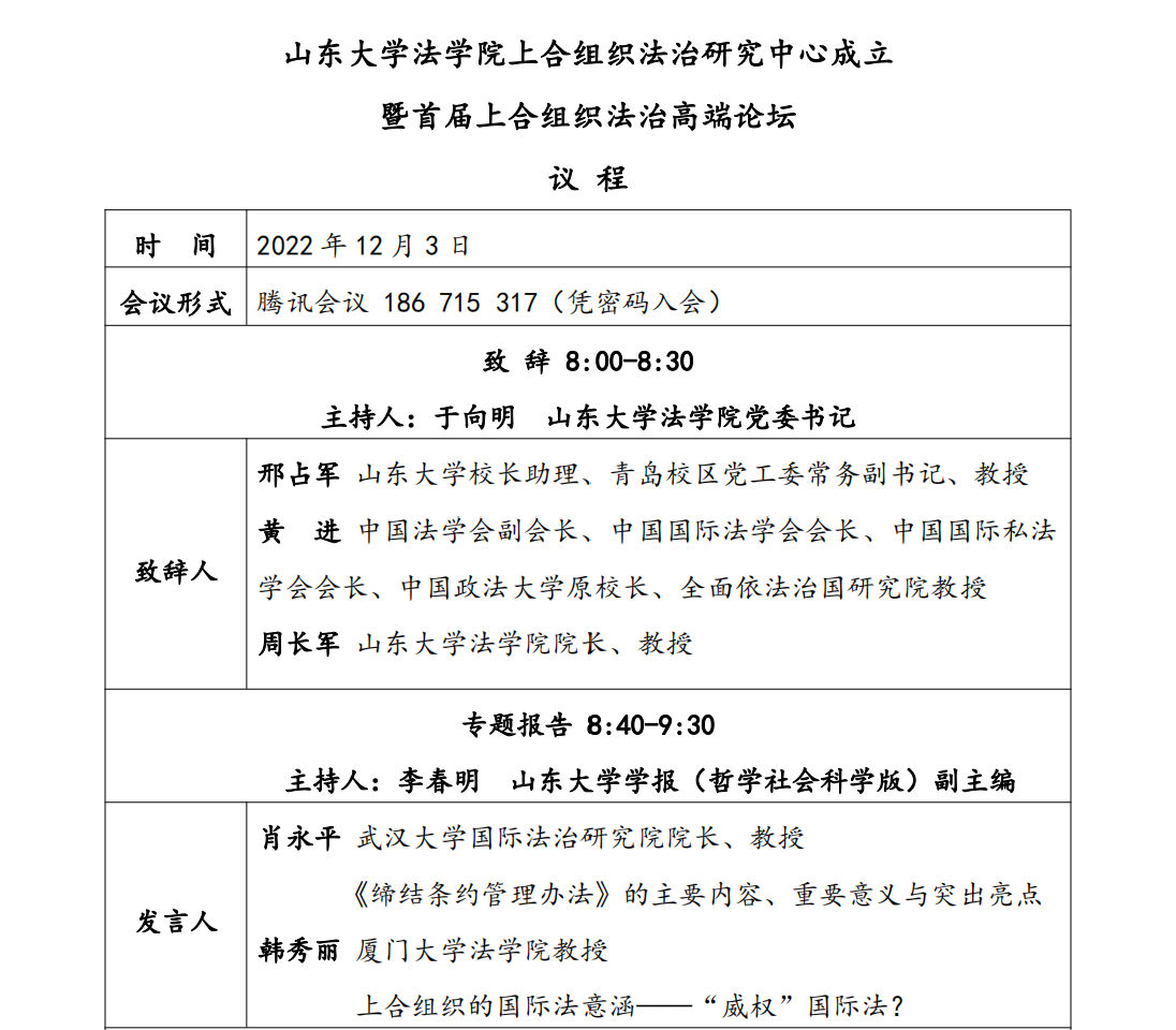 会议议程 | taptap点点体育上合组织法治研究中心成立暨首届上合组织法治高端论坛