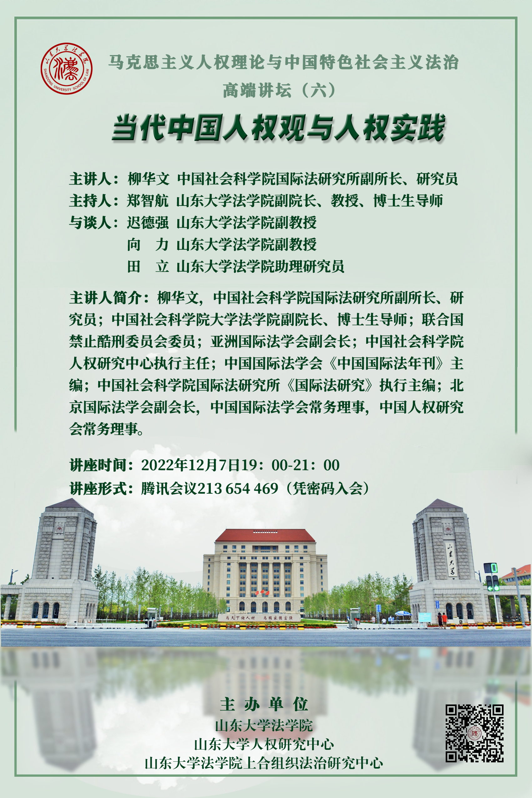 讲座预告 | 马克思主义人权理论与中国特色社会主义法治高端讲坛(六):当代中国人权观与人权实践