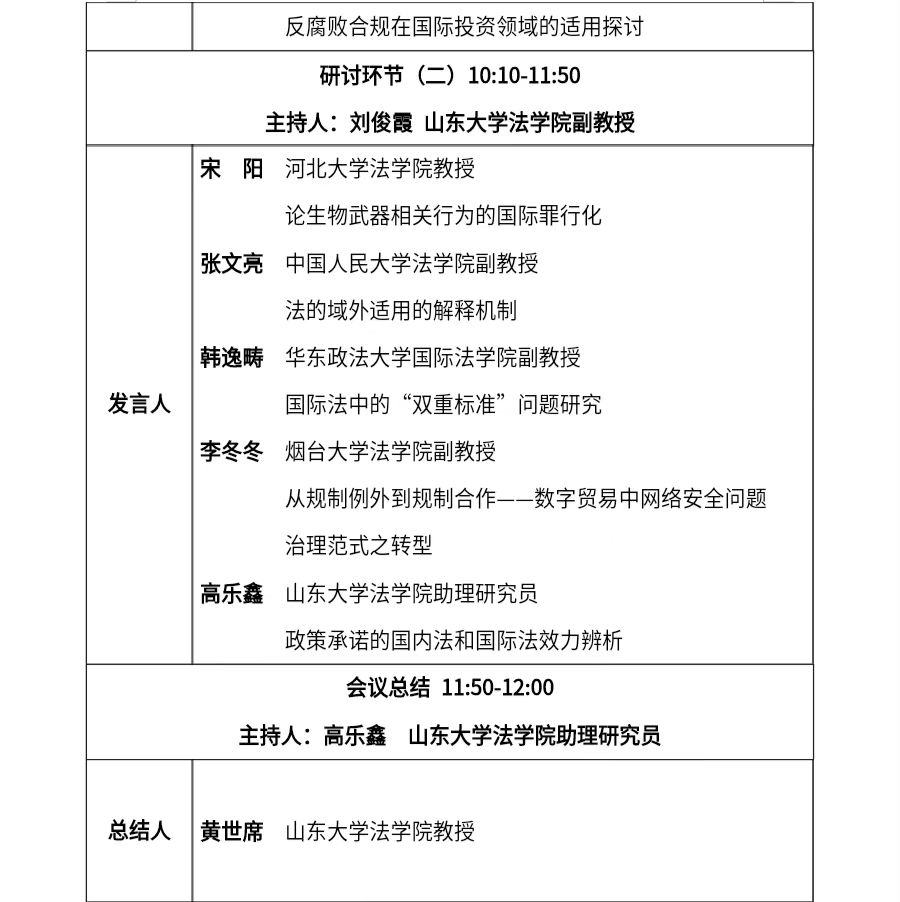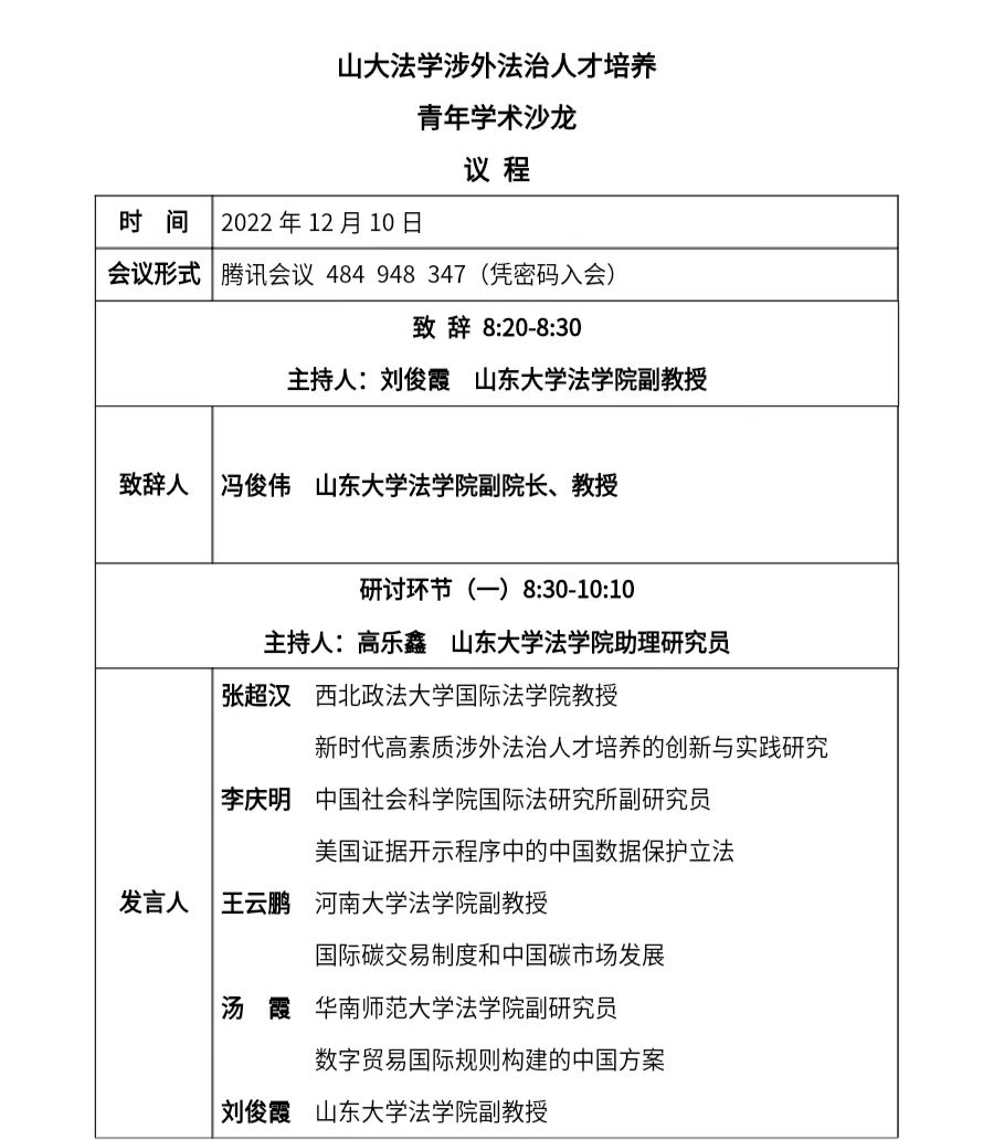 会议议程 | 山大法学涉外法治人才培养青年学术沙龙