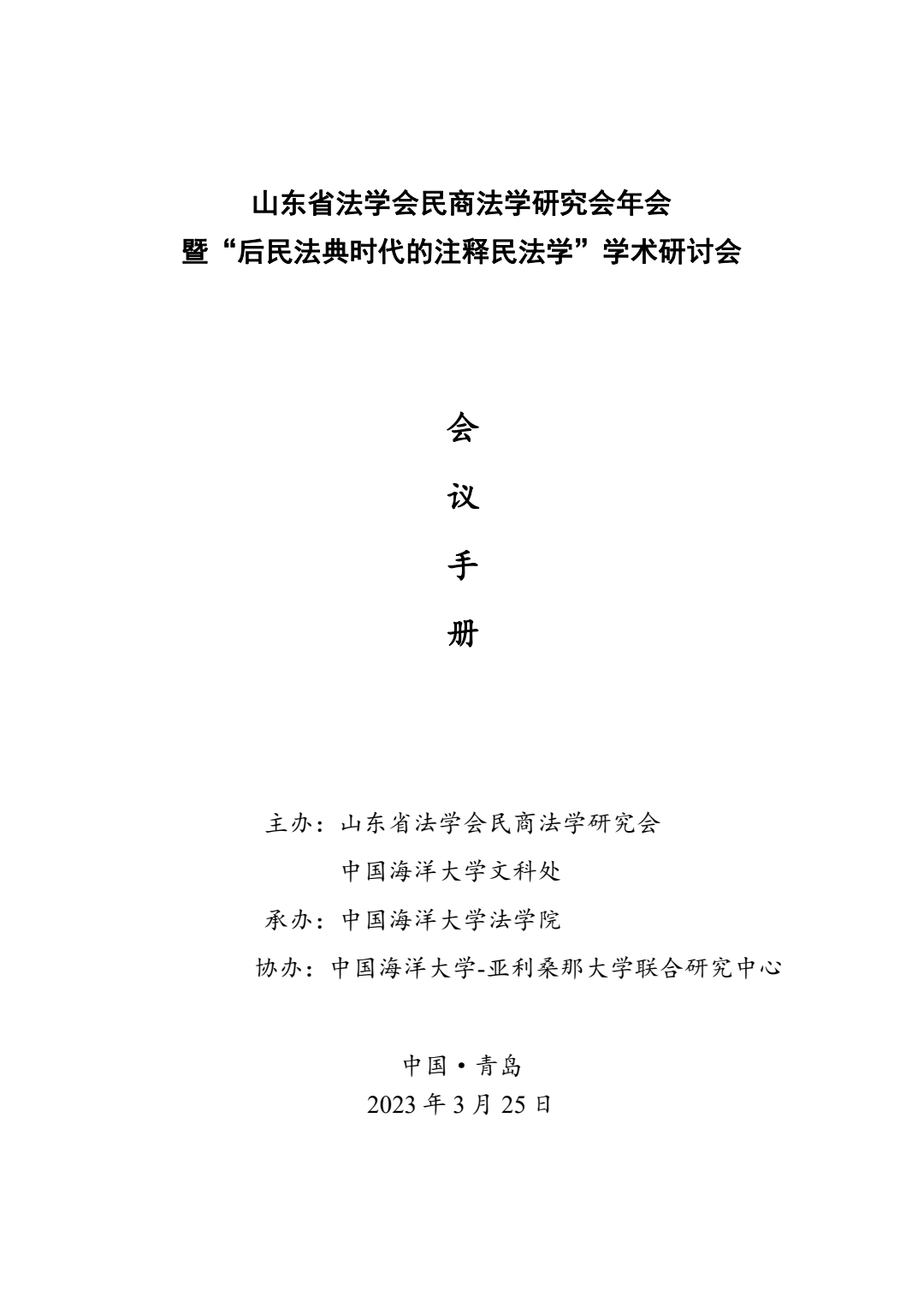 会议议程 | 山东省法学会民商法学研究会年会暨“后民法典时代的注释民法学”学术研讨会