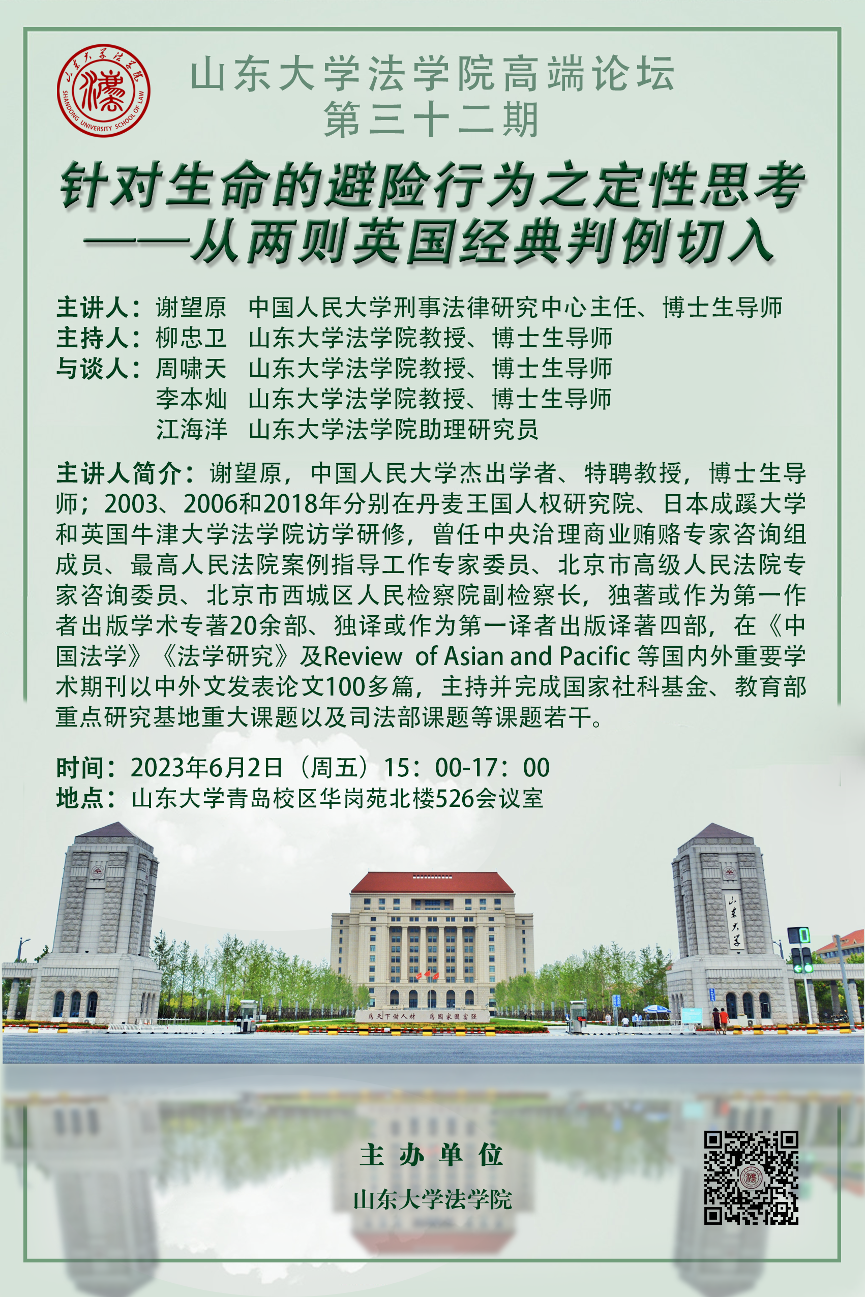 讲座预告 | taptap点点体育高端论坛第三十二期:针对生命的避险行为之定性思考——从两则英国经典判例切入