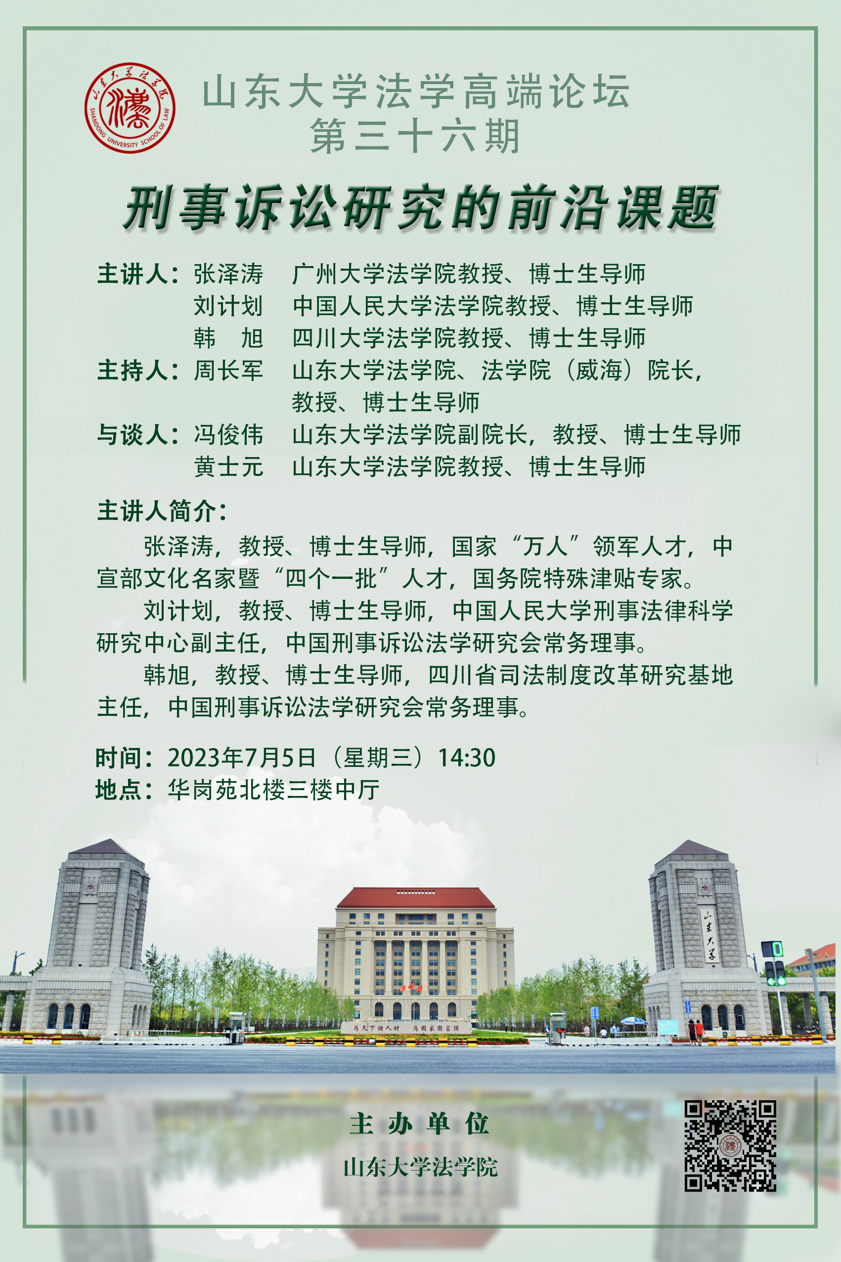 讲座预告 | taptap点点体育法学高端论坛第三十六期:刑事诉讼研究的前沿课题
