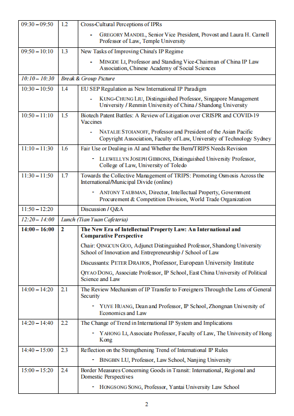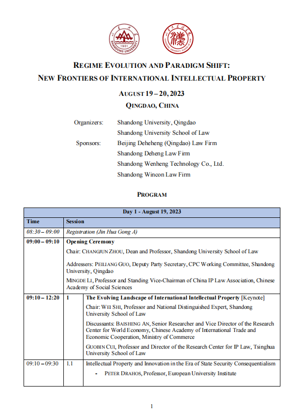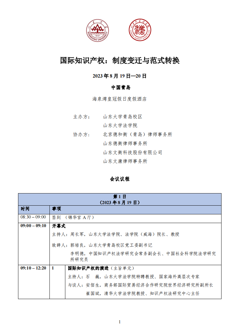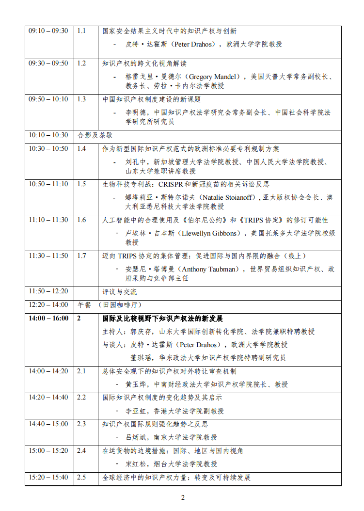 会议议程 | “国际知识产权:制度变迁与范式转换”国际研讨会