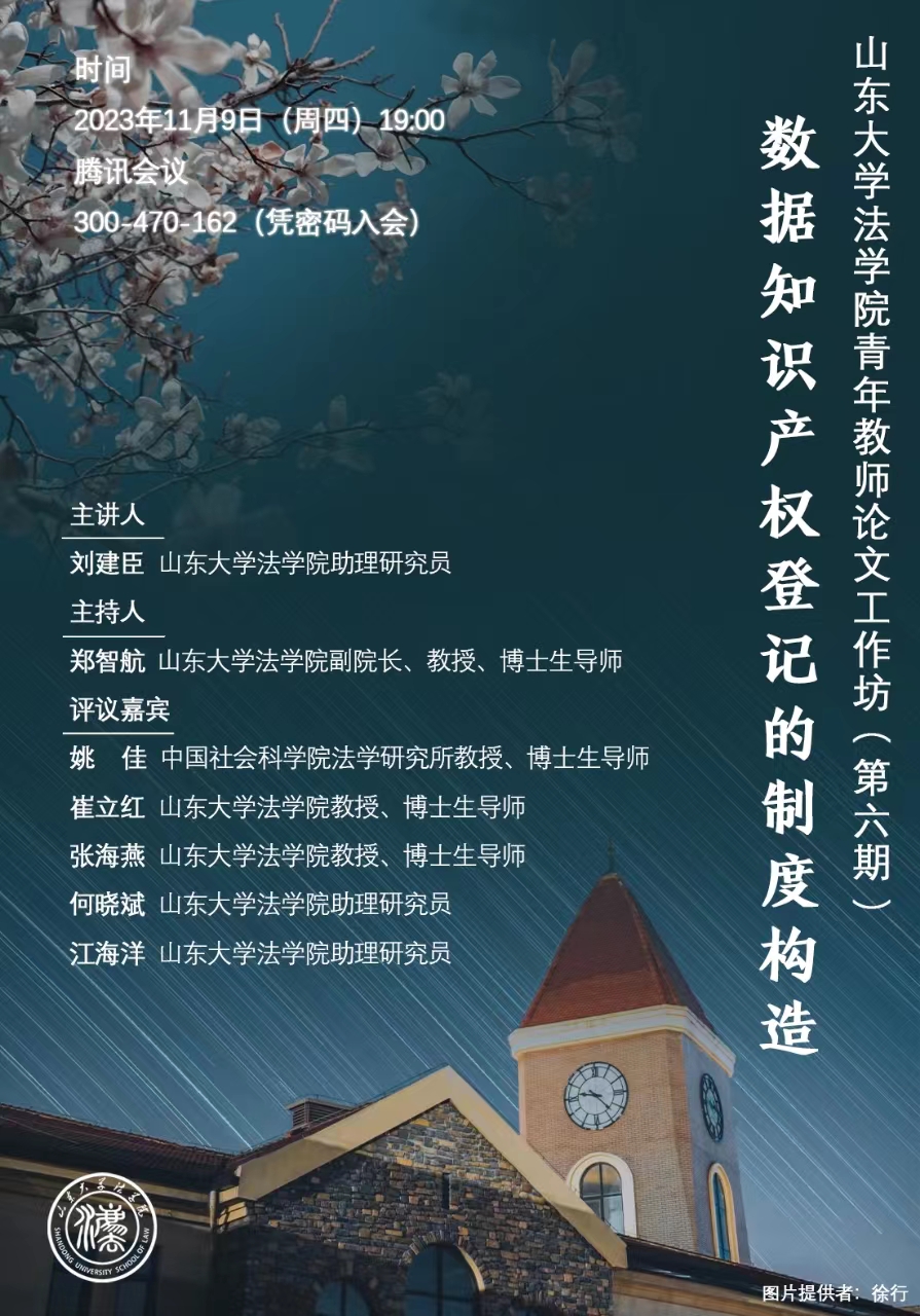 讲座预告 | taptap点点体育青年教师论文工作坊(第六期):数据知识产权登记的制度构造