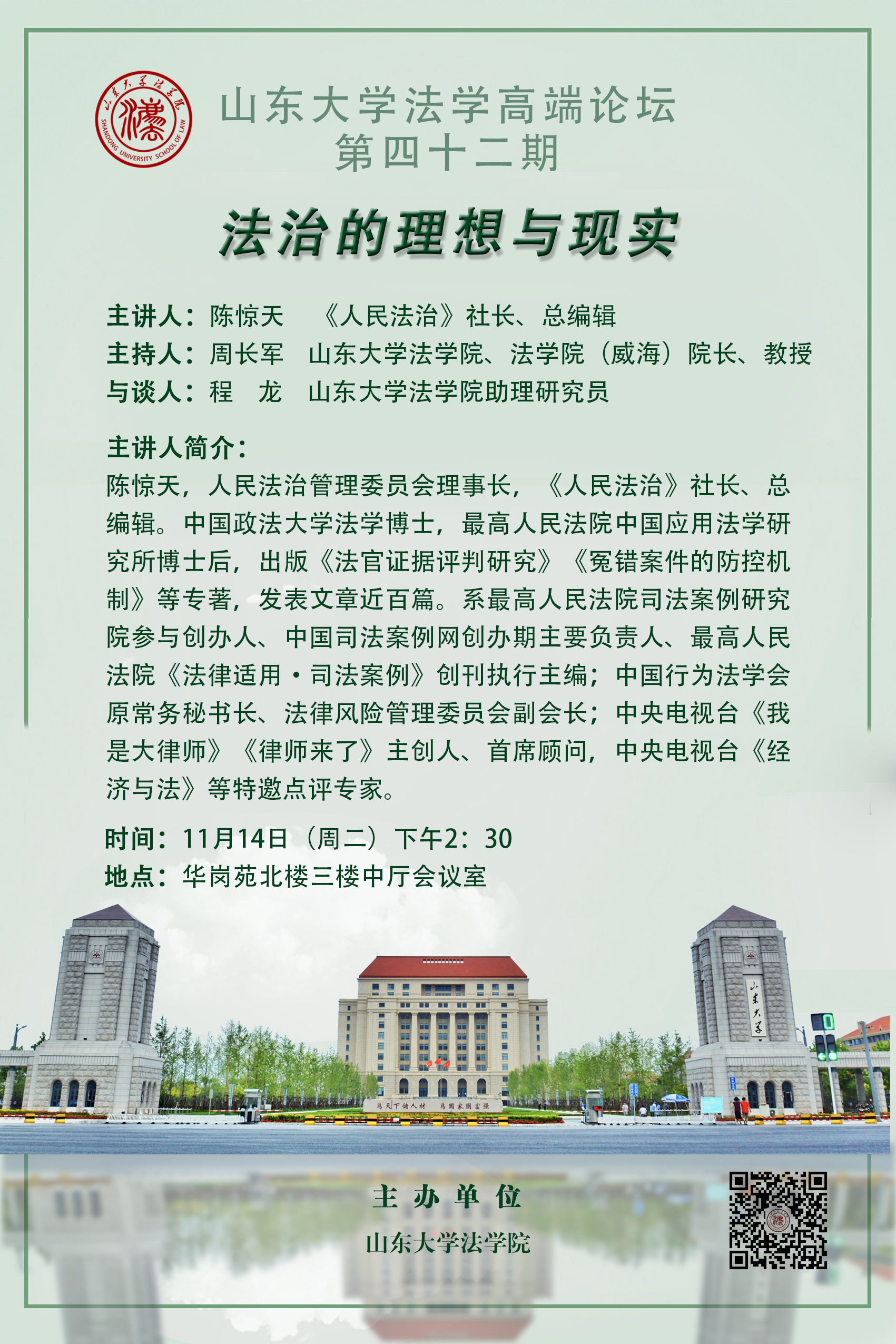 讲座预告 | taptap点点体育法学高端论坛第四十二期:法治的理想与现实