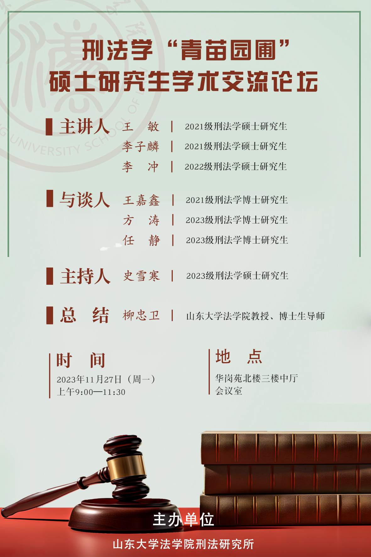 讲座预告 | 刑法学“青苗园圃”硕士研究生学术交流论坛