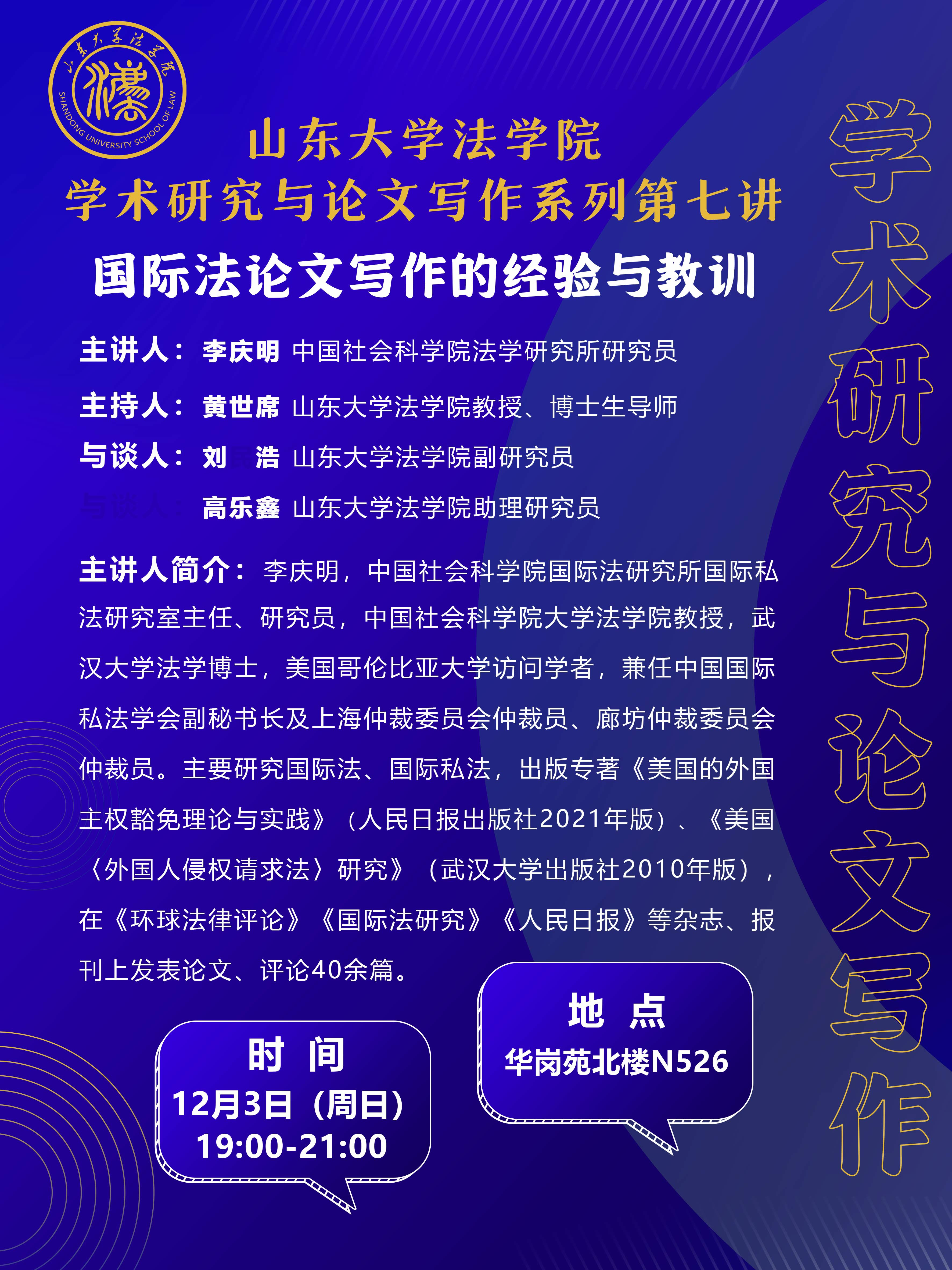 讲座预告 | taptap点点体育学术研究与论文写作系列第七讲:国际法论文写作的经验与教训