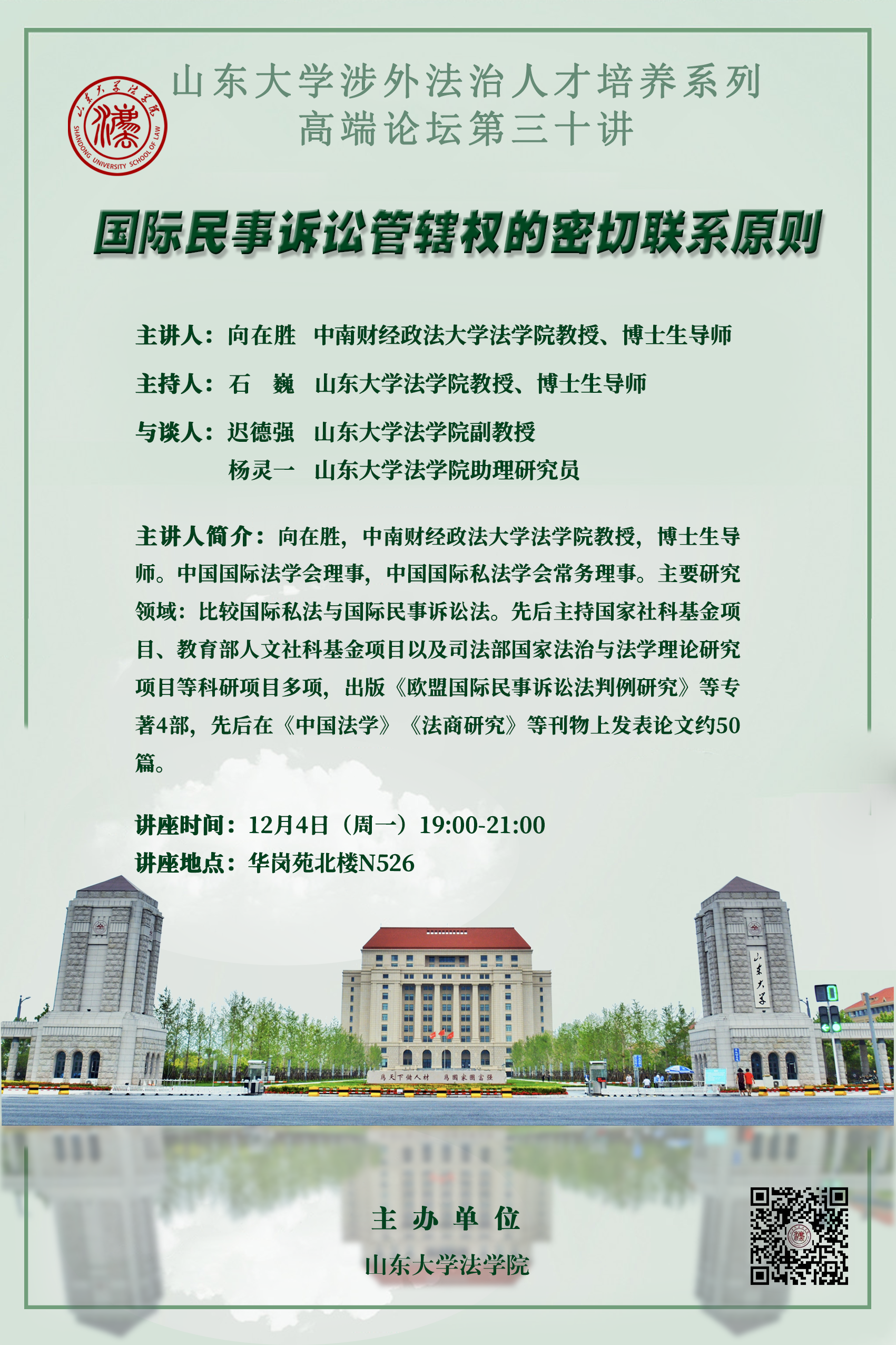 讲座预告 | taptap点点体育涉外法治人才培养系列高端论坛第三十讲:国际民事诉讼管辖权的密切联系原则