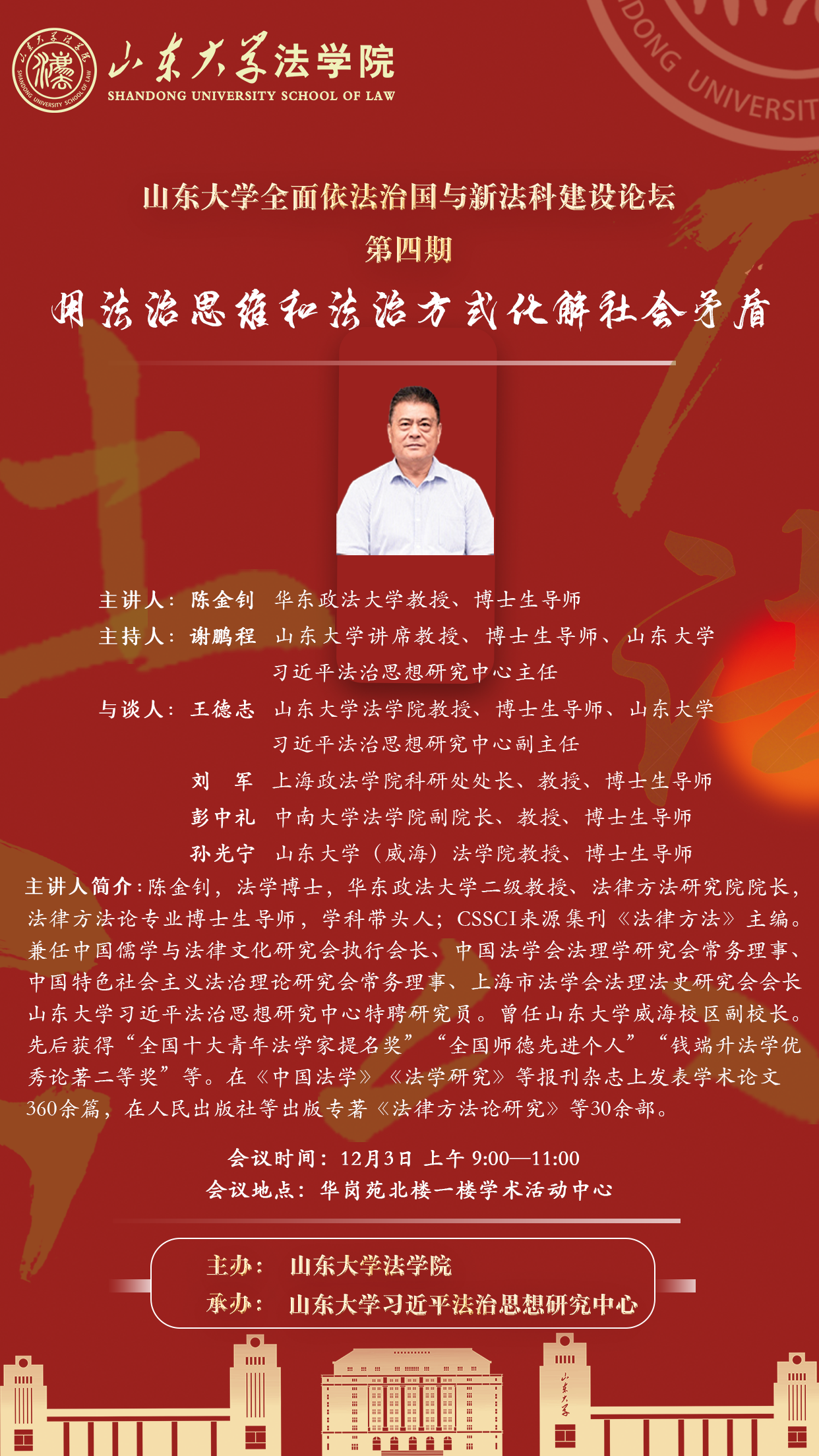 讲座预告 | taptap点点体育全面依法治国与新法科建设论坛第四期:用法治思维和法治方式化解社会矛盾