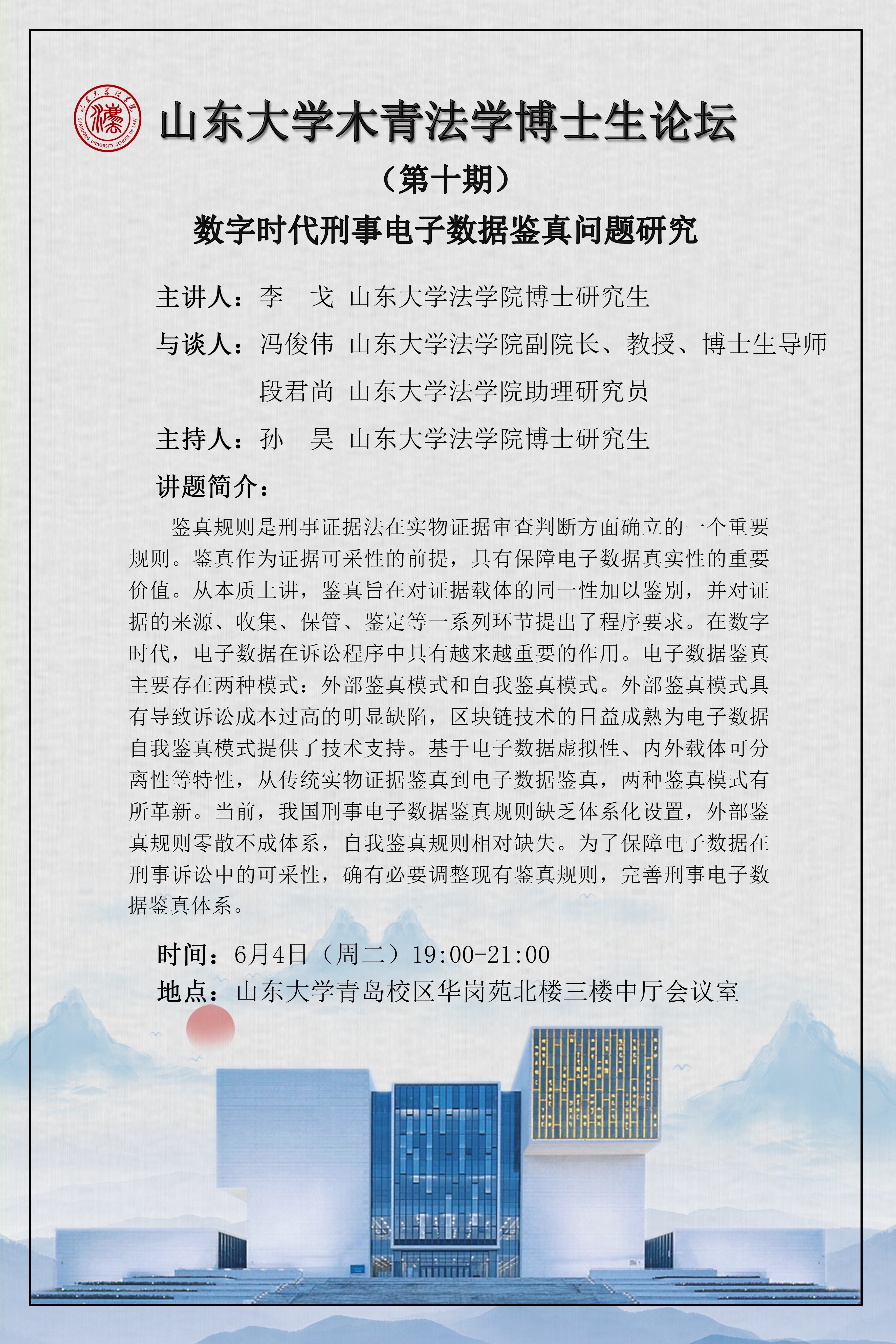 讲座预告 | taptap点点体育木青法学博士生论坛(第十期):数字时代刑事电子数据鉴真问题研究