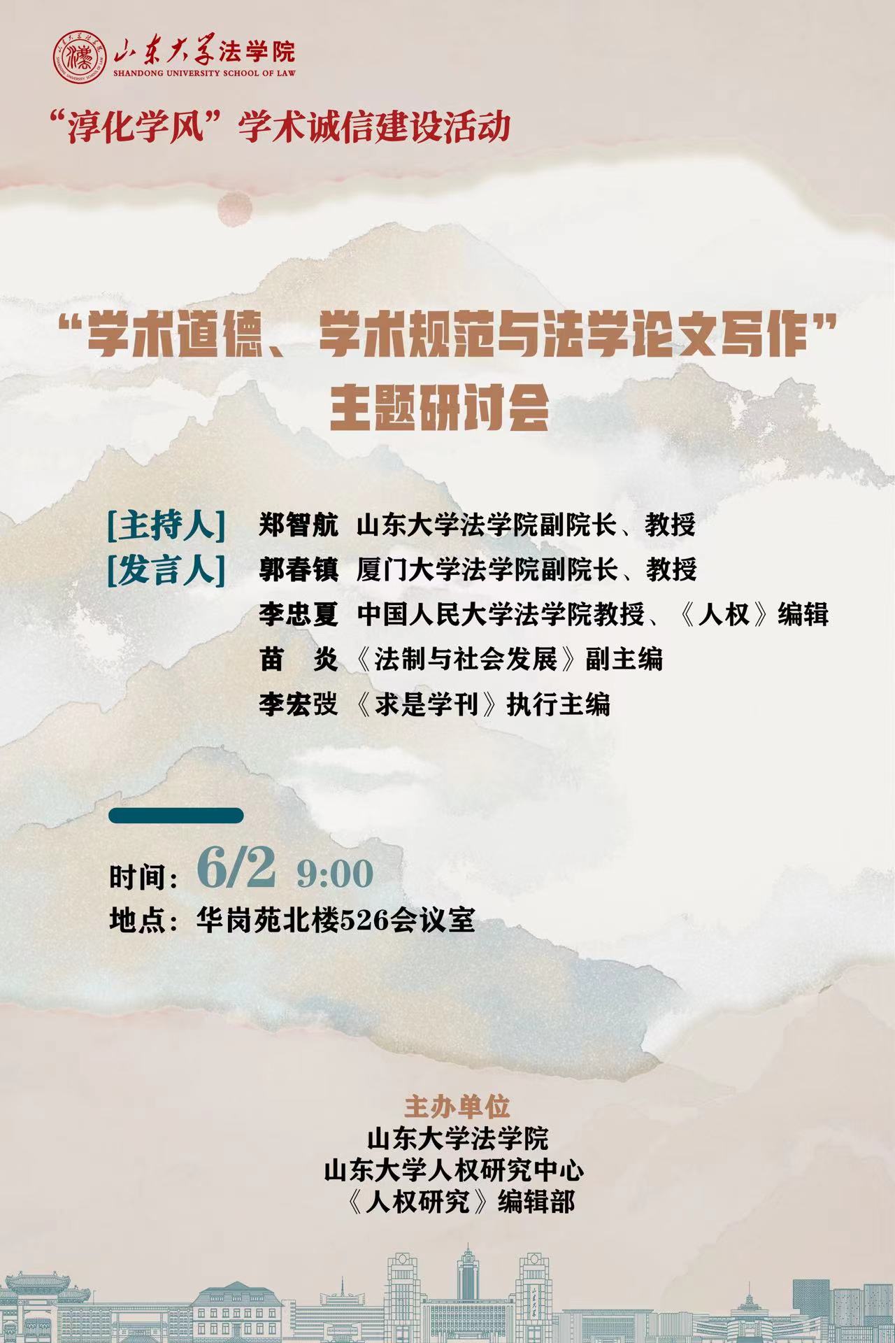 讲座预告 | “淳化学风”学术诚信建设活动:“学术道德、学术规范与法学论文写作”主题研讨会