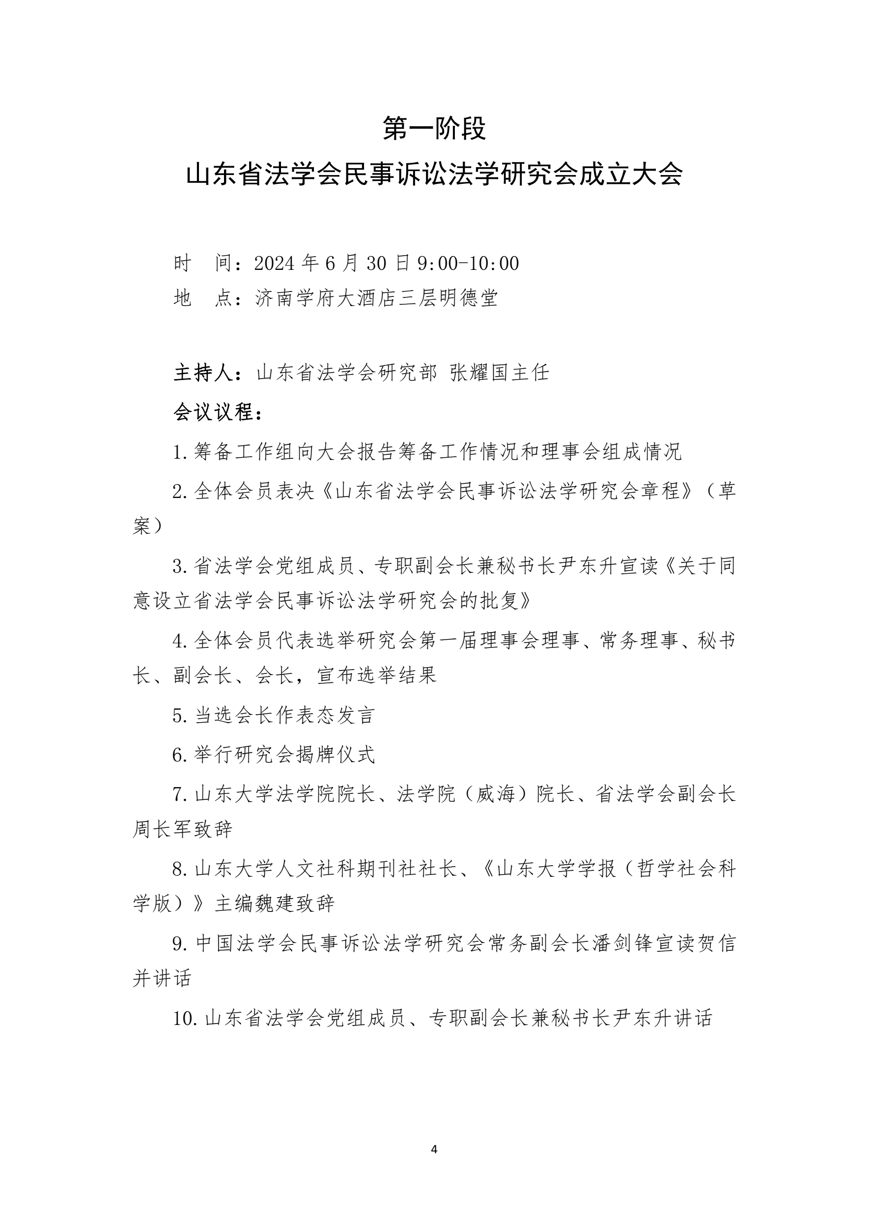 会议议程 | 山东省法学会民事诉讼法学研究会成立大会暨2024年年会