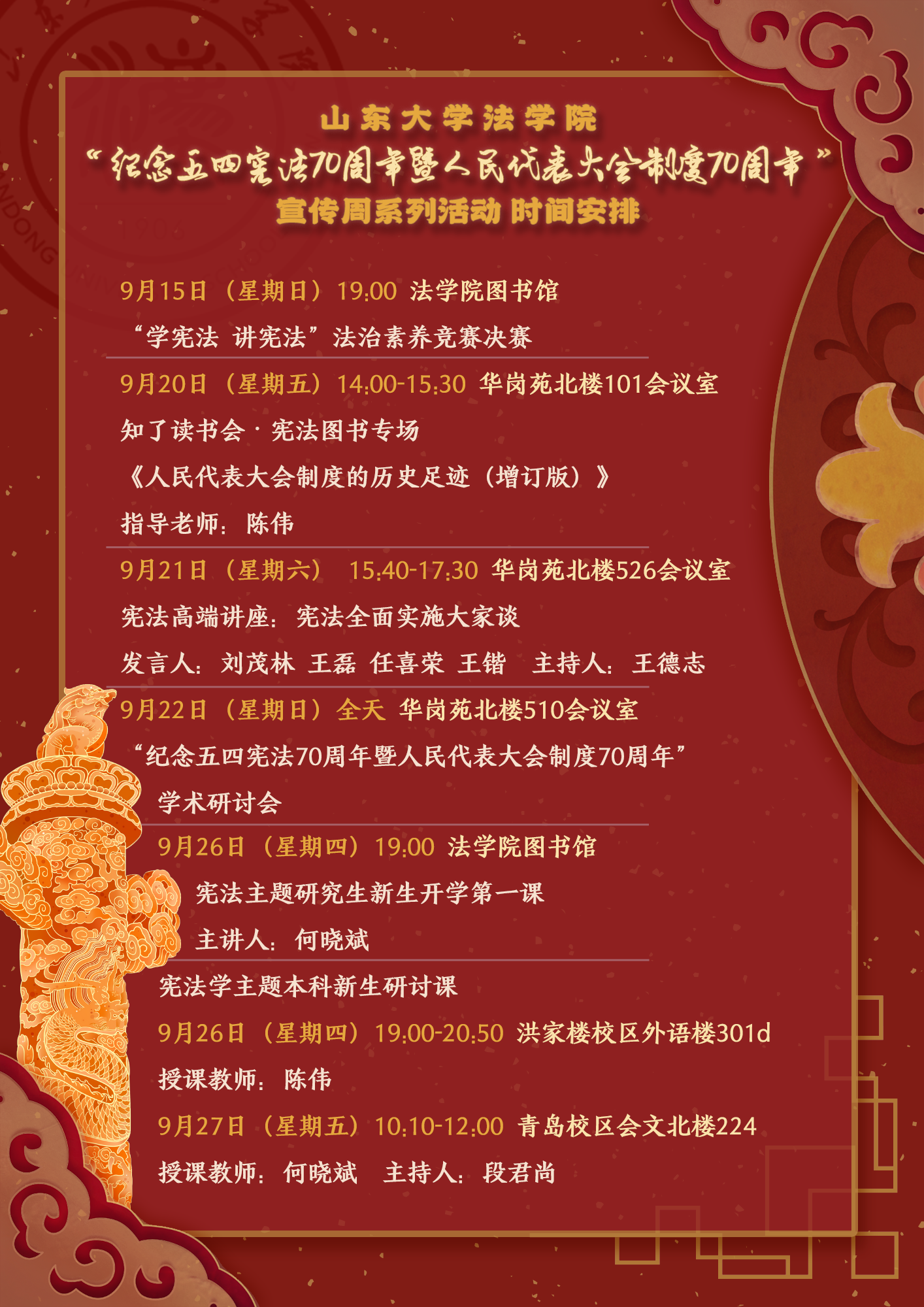 学术活动预告 | “纪念五四宪法70周年暨人民代表大会制度70周年”宣传周系列活动时间安排