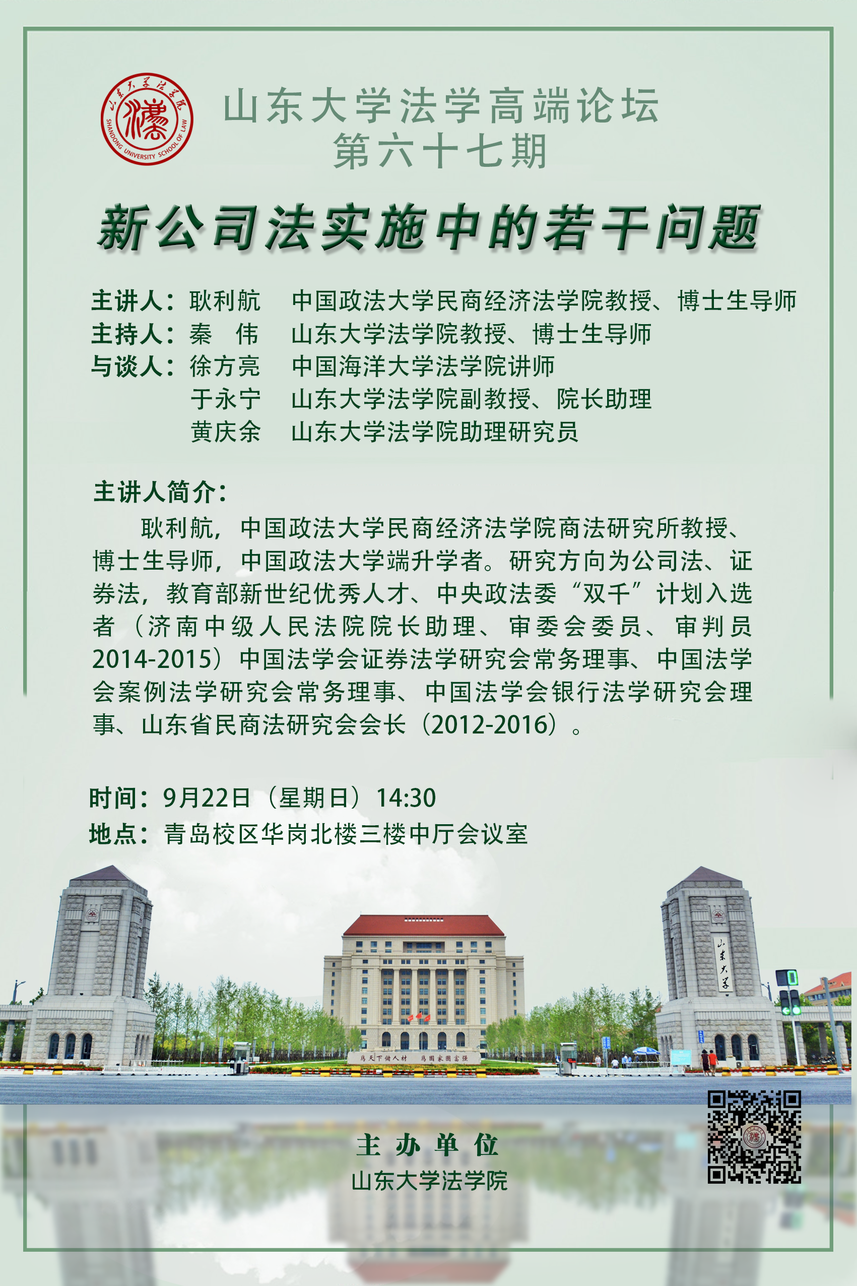 讲座预告 | taptap点点体育法学高端论坛第六十七期:新公司法实施中的若干问题