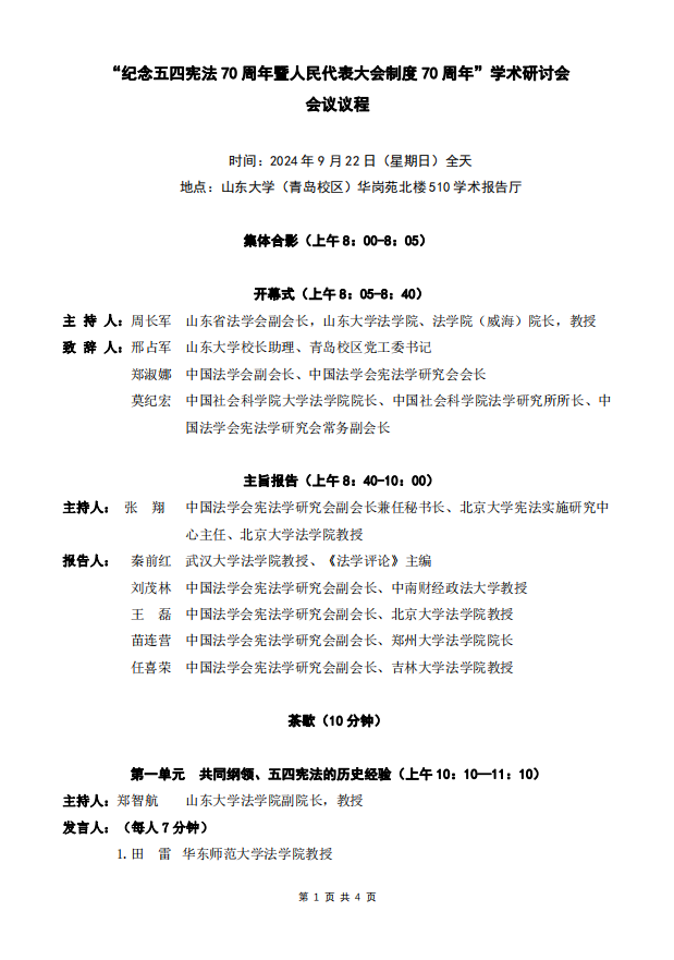 会议议程 | “纪念五四宪法70周年暨人民代表大会制度70周年”学术研讨会