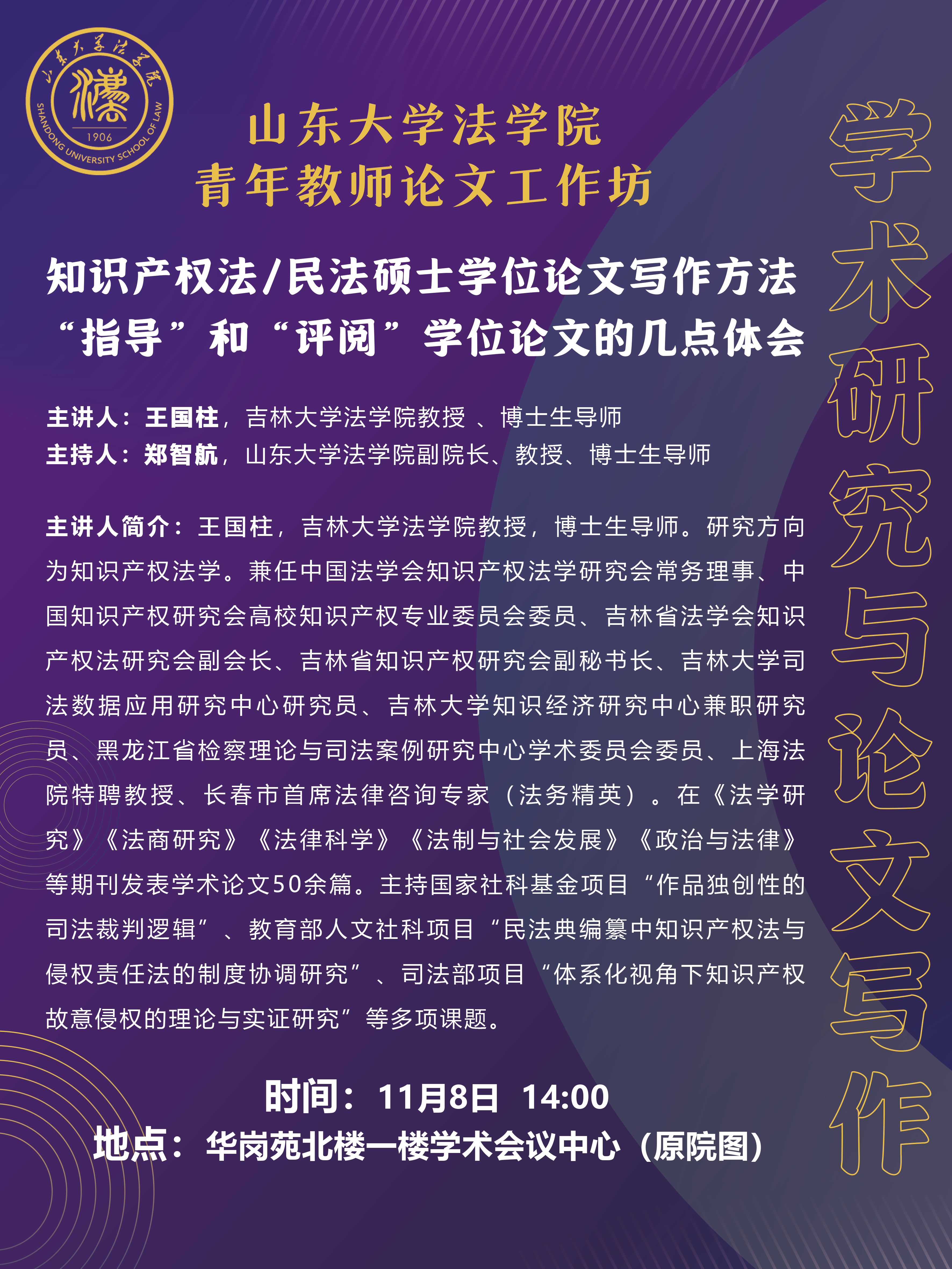 讲座预告 | taptap点点体育青年教师论文工作坊:知识产权法/民法硕士学位论文写作方法“指导”和“评阅”学位论文的几点体会