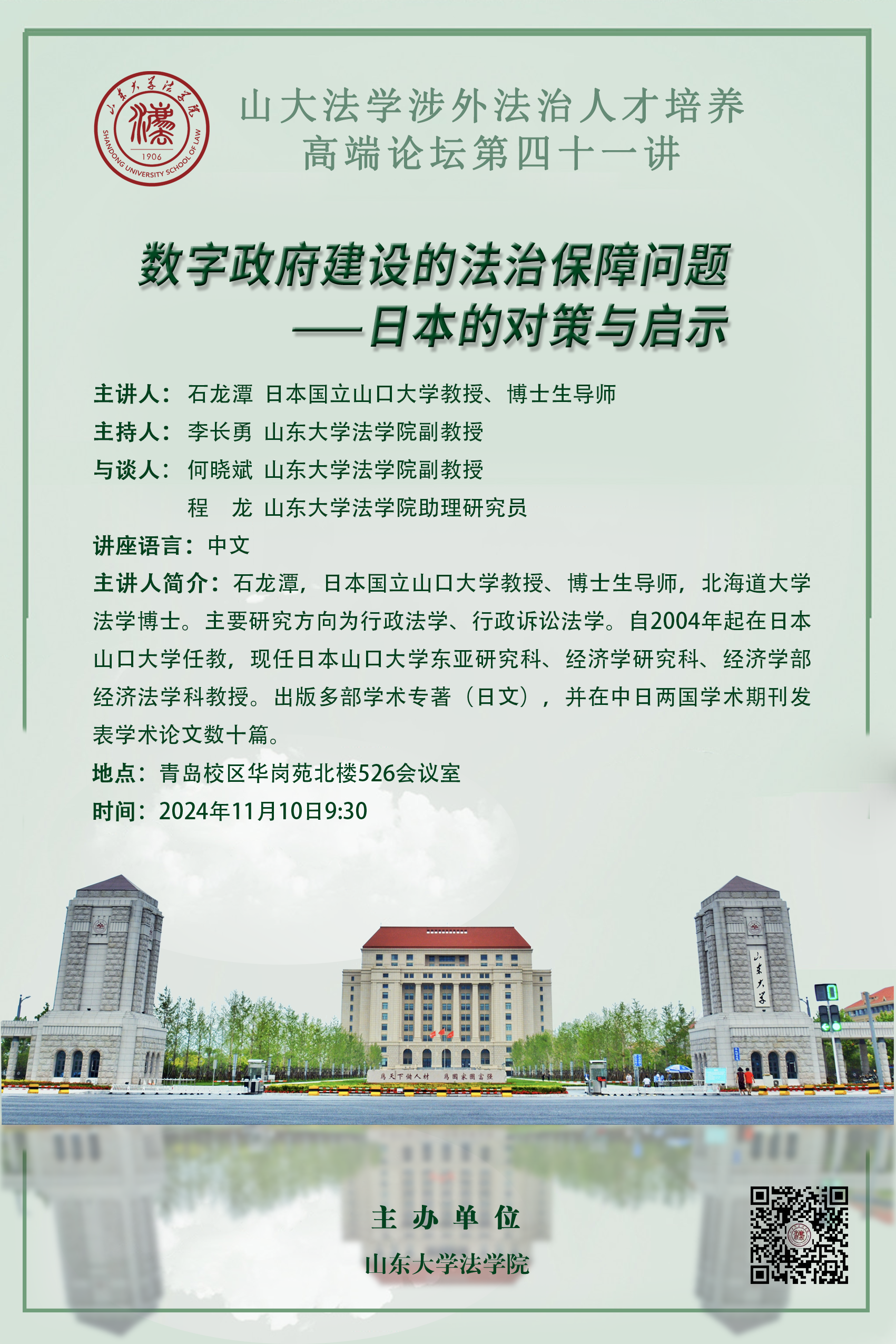 讲座预告 | 山大法学涉外法治人才培养高端论坛第四十一讲:数字政府建设的法治保障问题——日本的对策与启示