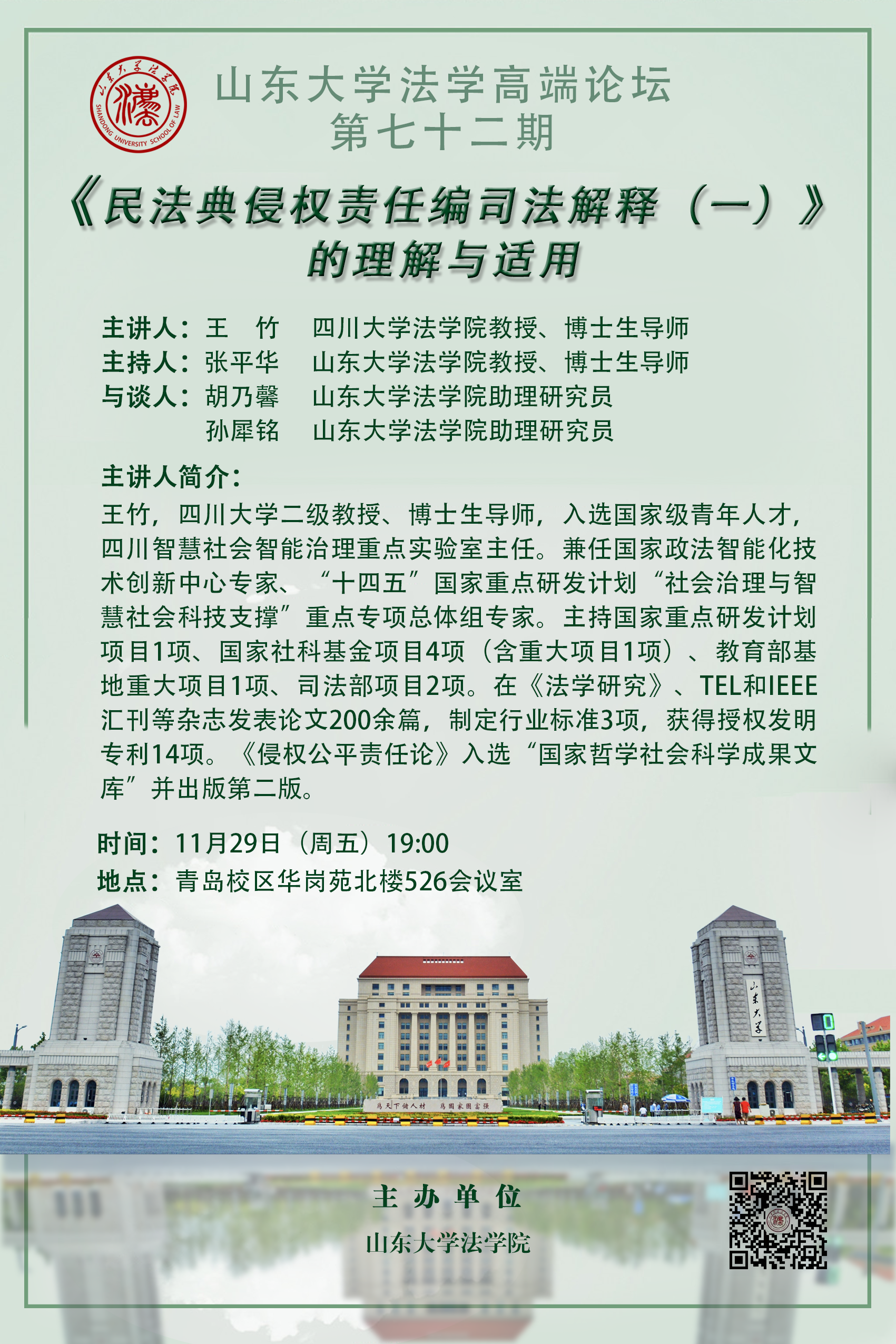讲座预告 | taptap点点体育法学高端论坛第七十二期:《民法典侵权责任编司法解释(一)》的理解与适用
