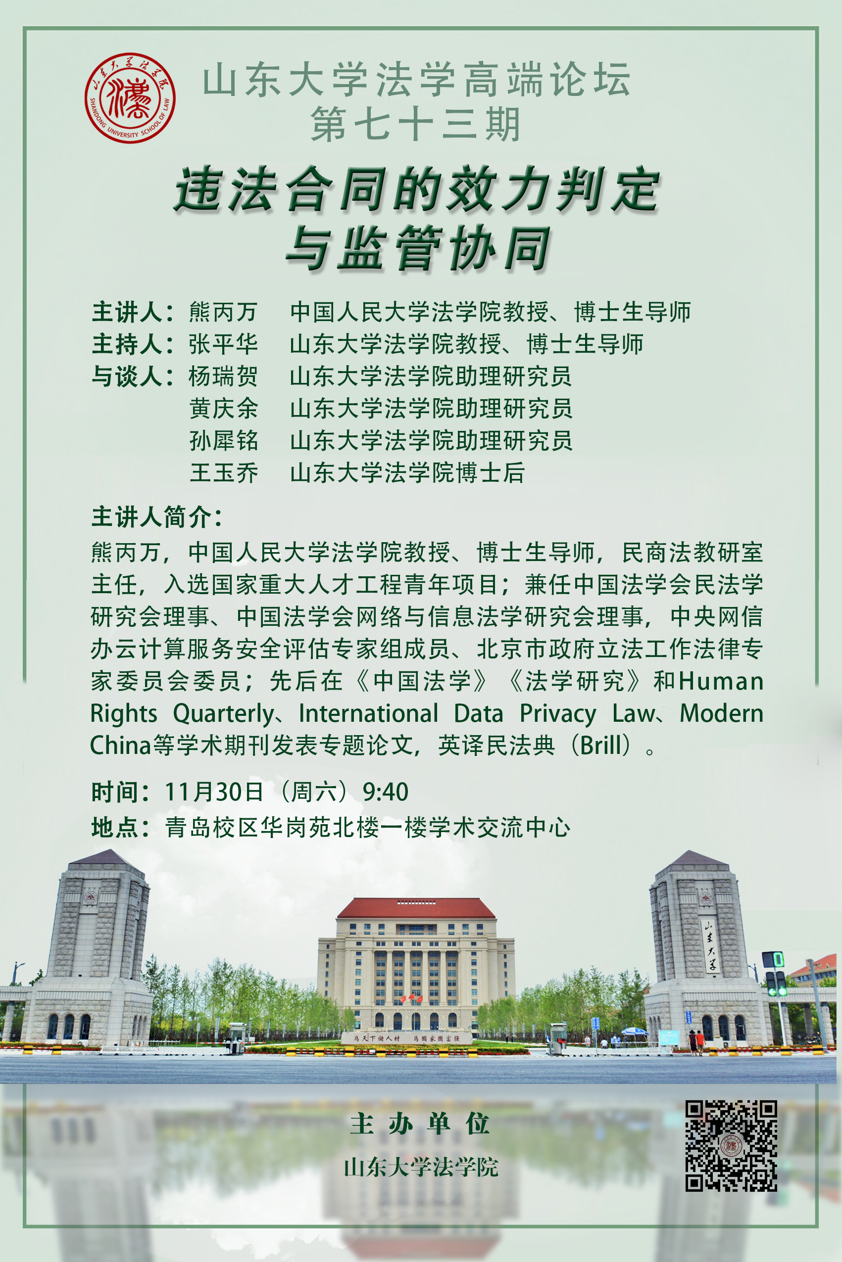 讲座预告 | taptap点点体育法学高端论坛第七十三期:违法合同的效力判定与监管协同