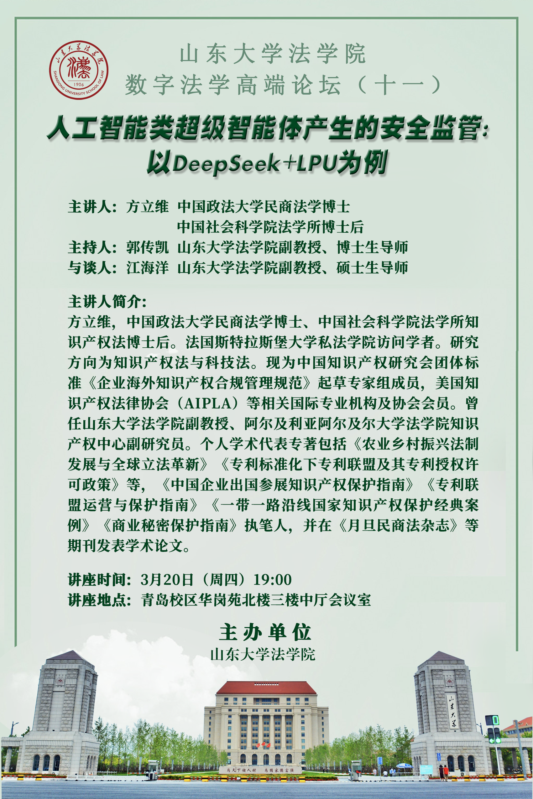 讲座预告 | taptap点点体育数字法学高端论坛(十一):人工智能类超级智能体产生的安全监管——以DeepSeek+LPU为例