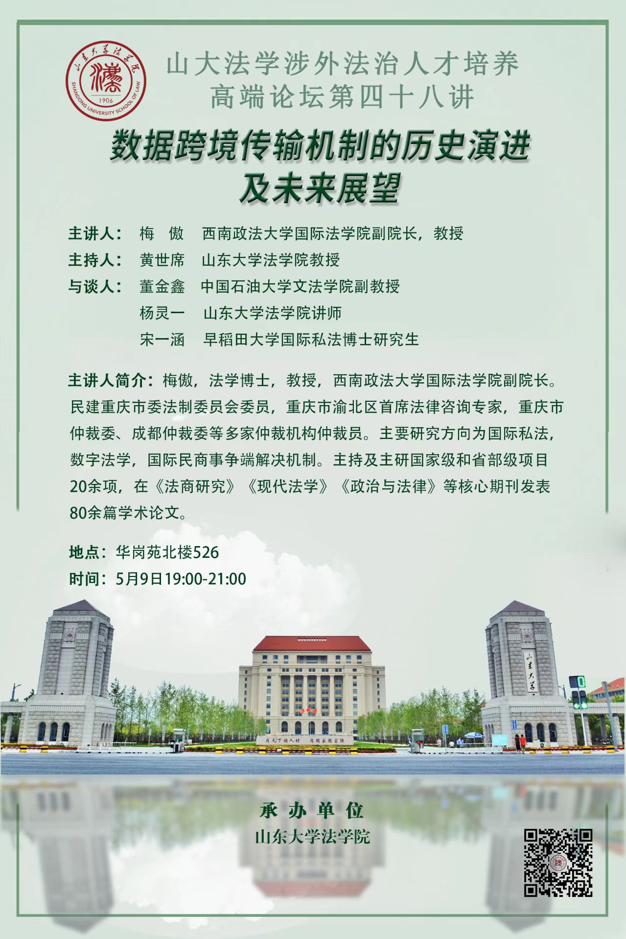 讲座预告|山大法学涉外法治人才培养高端论坛第四十八讲:数据跨境传输机制的历史演进及未来展望
