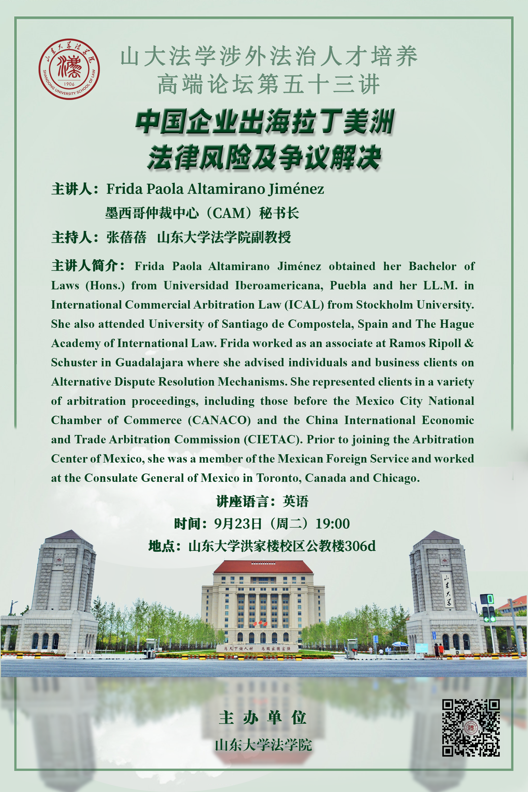 讲座预告 | 山大法学涉外法治人才培养高端论坛第五十三讲:中国企业出海拉丁美洲法律风险及争议解决