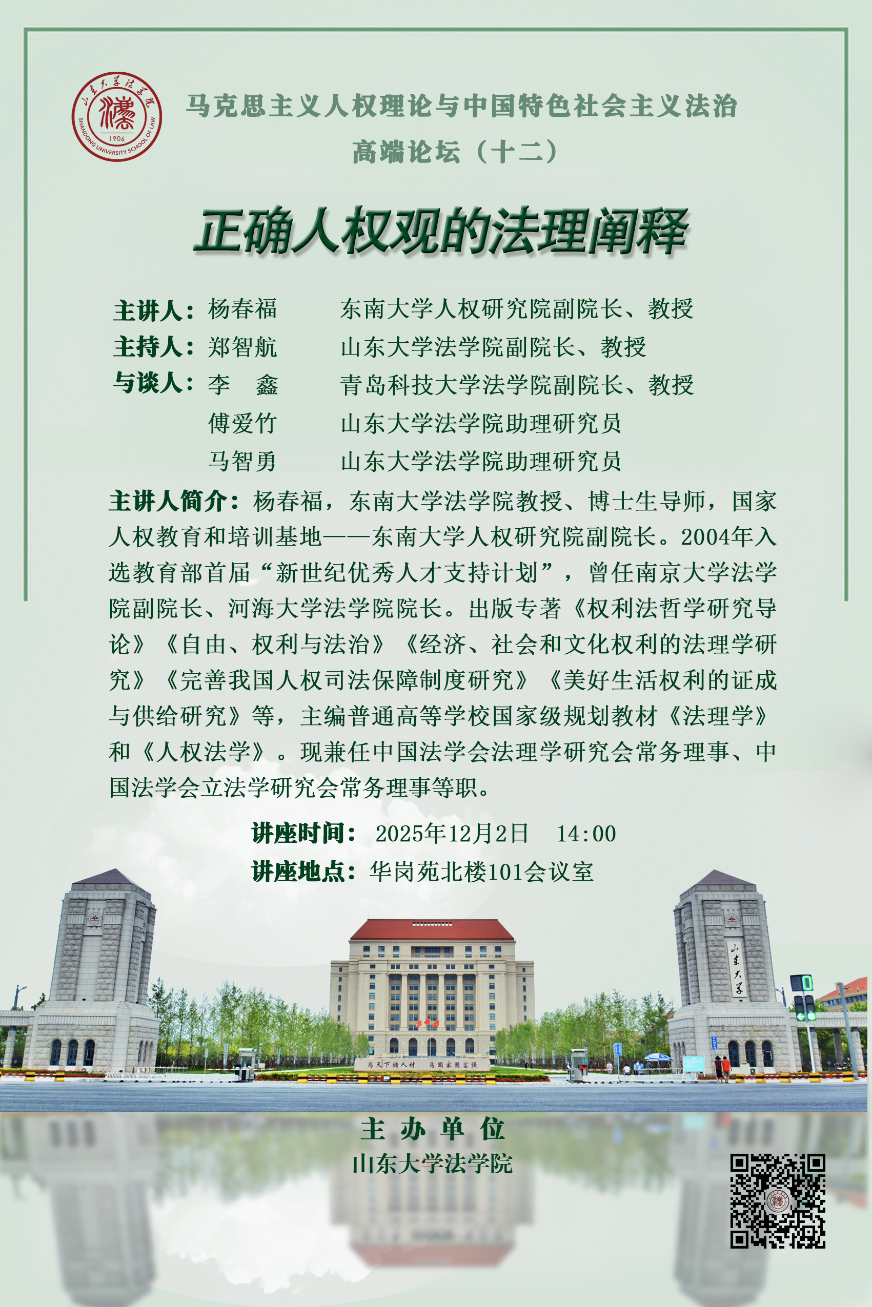 讲座预告 | 马克思主义人权理论与中国特色社会主义法治高端论坛(十二):正确人权观的法理阐释