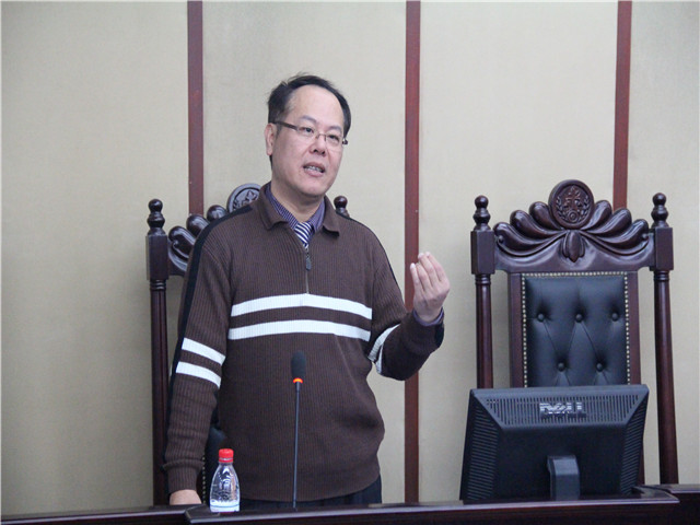 1月8日下午,台湾中兴大学廖纬民副教授来到taptap点点体育,在科研楼模拟法庭,给taptap点点体育师生带来题为“台湾2012年个人资料保护法新法介绍与分析”的专题报告。报告由taptap点点体育副院长姜峰副教授主持。