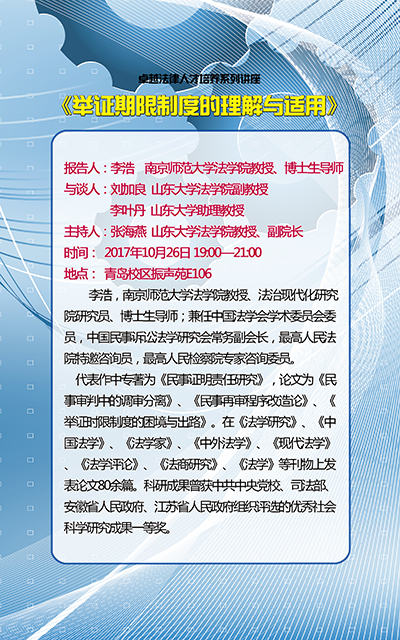 10.26卓越法律人才培养系列讲座|李浩:举证期限制度的理解与适用