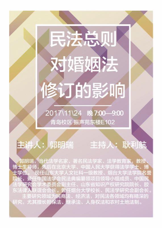 11.24报告预告|郭明瑞:民法总则对婚姻法修订的影响