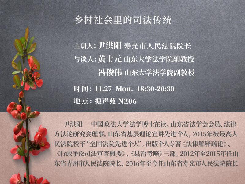 11.27报告预告|尹洪阳:乡村社会里的司法传统