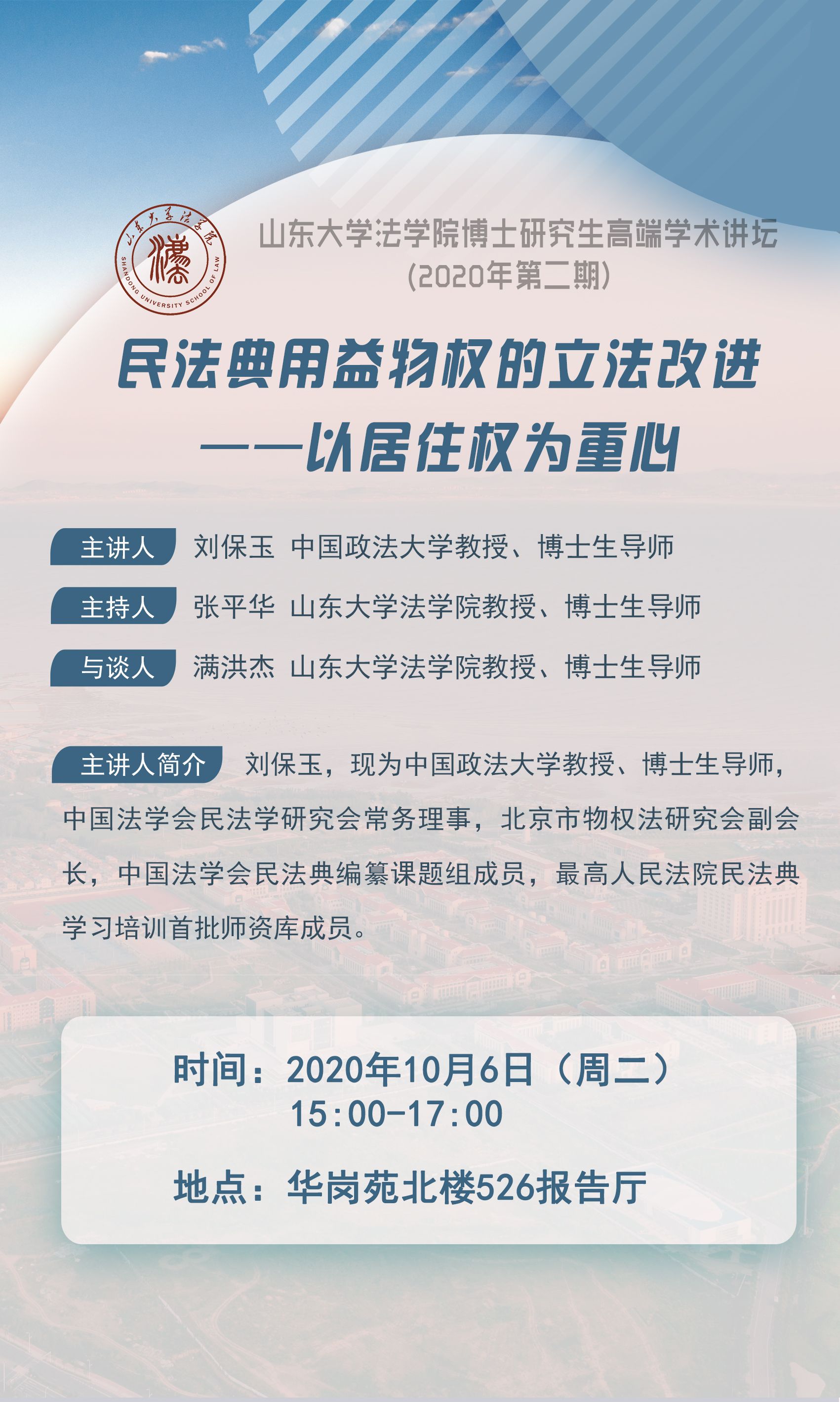 taptap点点体育博士研究生高端学术讲坛(2020年第二期):民法典用益物权的立法改进——以居住权为重心
