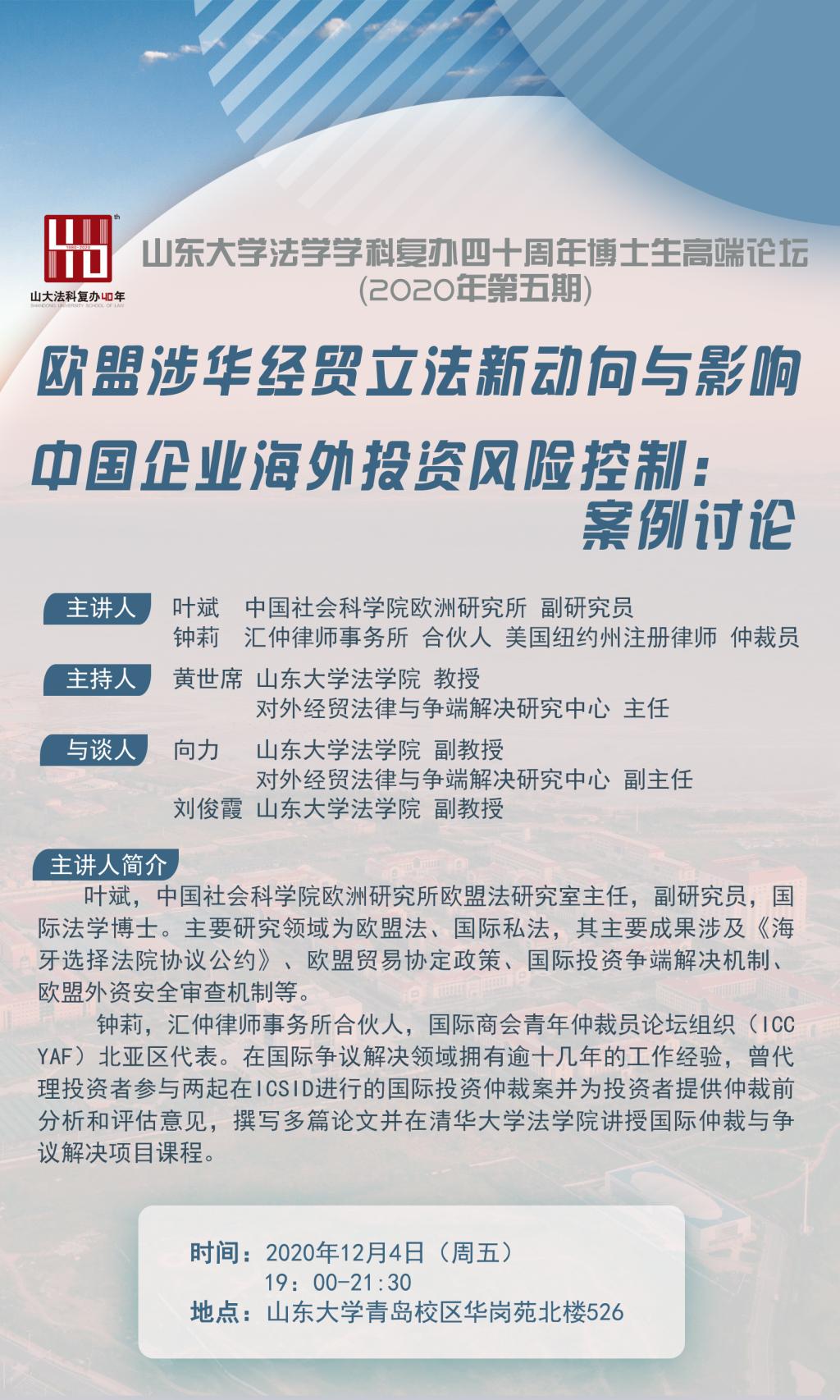 taptap点点体育法学学科复办四十周年博士生高端讲坛(2020年第五期):欧盟涉华经贸立法新动向与影响 中国企业海外投资风险控制:案例讨论