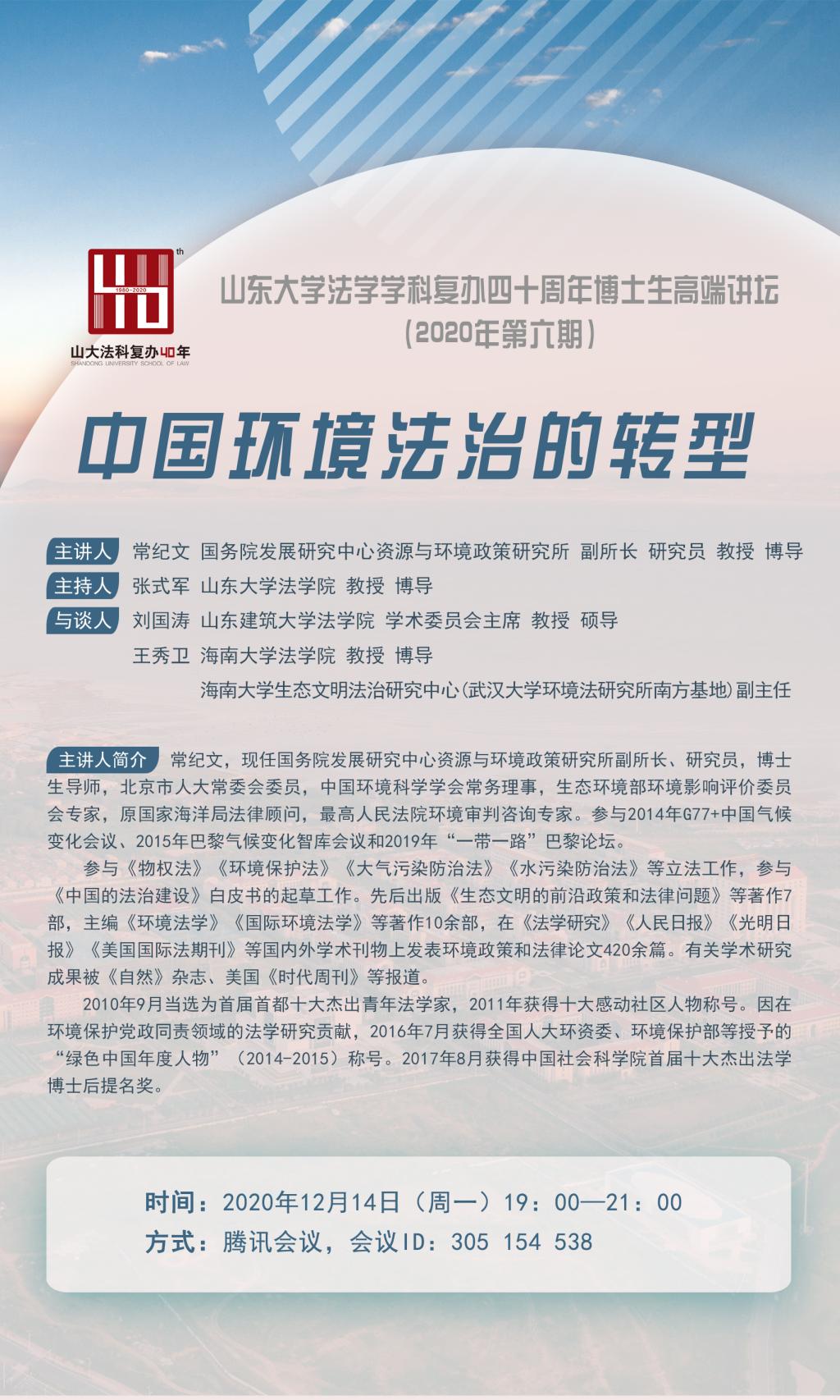 taptap点点体育法学学科复办四十周年博士生高端讲坛(2020年第六期):中国环境法治的转型