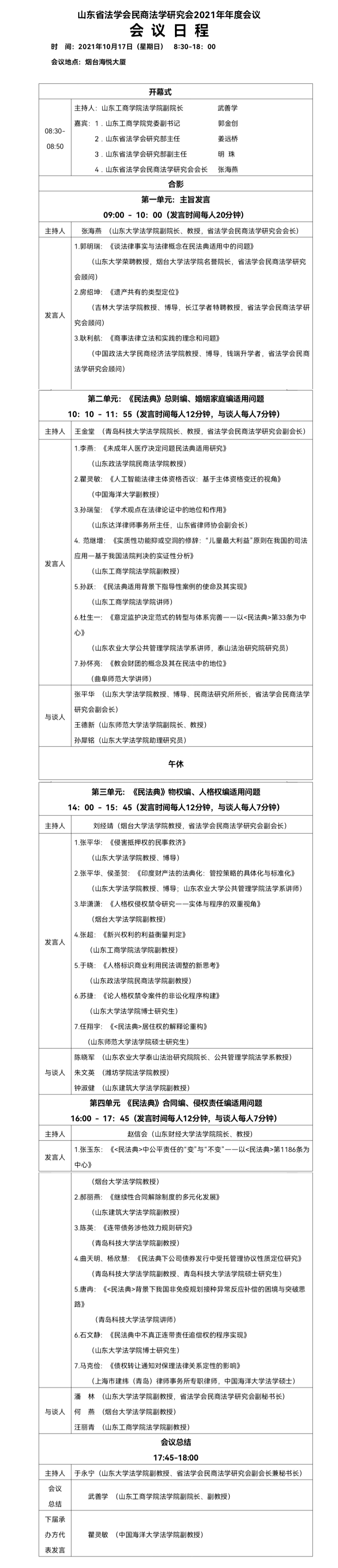 山东省法学会民商法学研究会2021年年会正式通知(第4号)