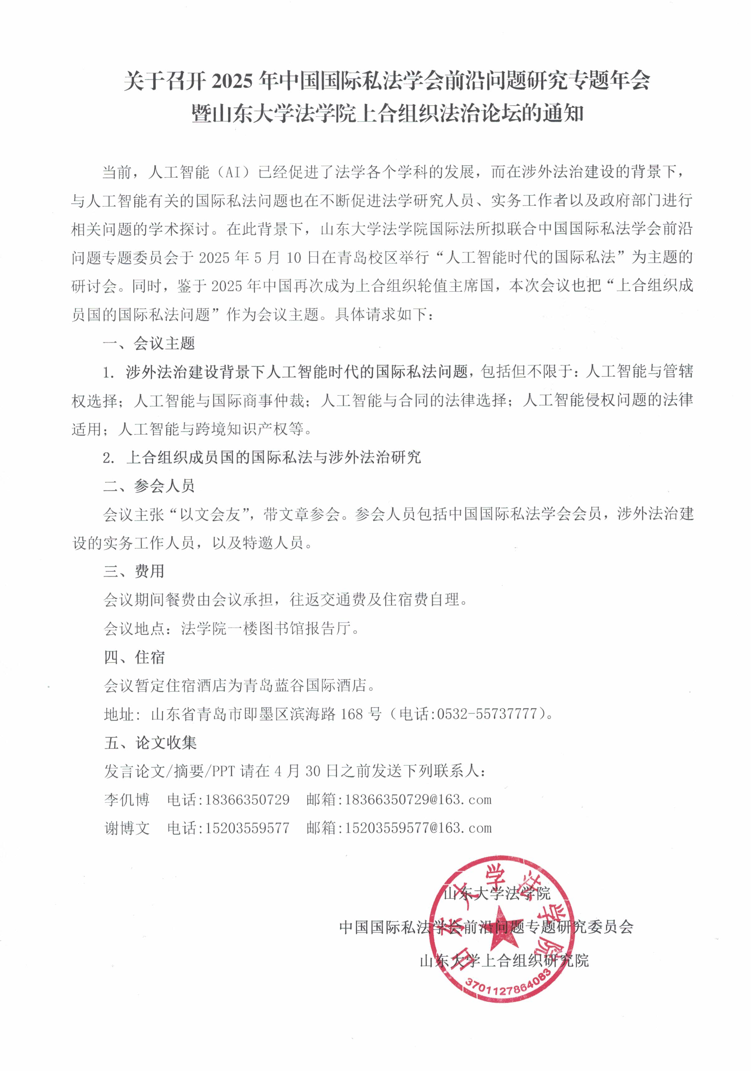 关于召开2025年中国国际私法学会前沿问题研究专题年会暨taptap点点体育上合组织法治论坛的通知