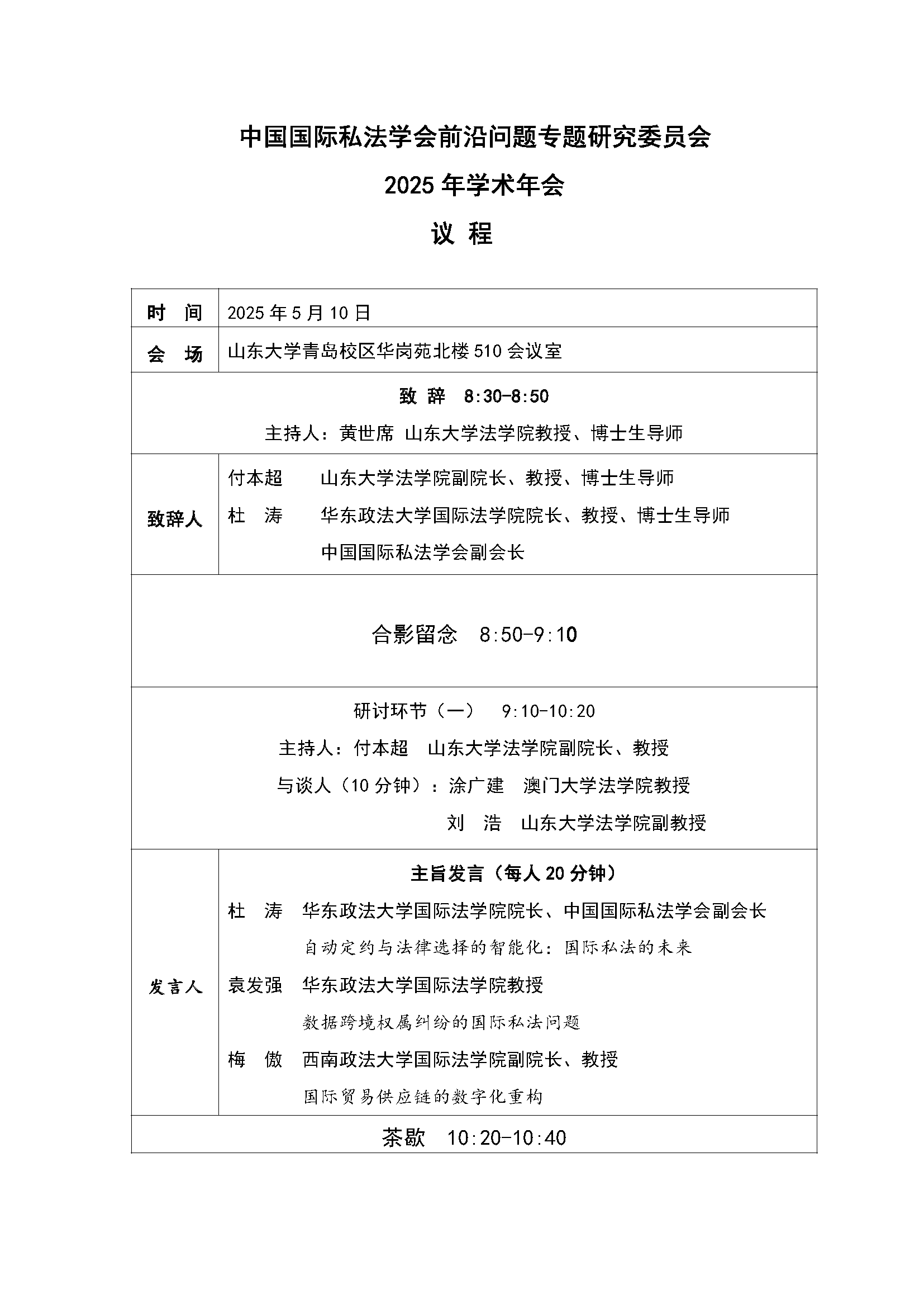 中国国际私法学会前沿问题专题研究委员会2025年学术年会会议手册