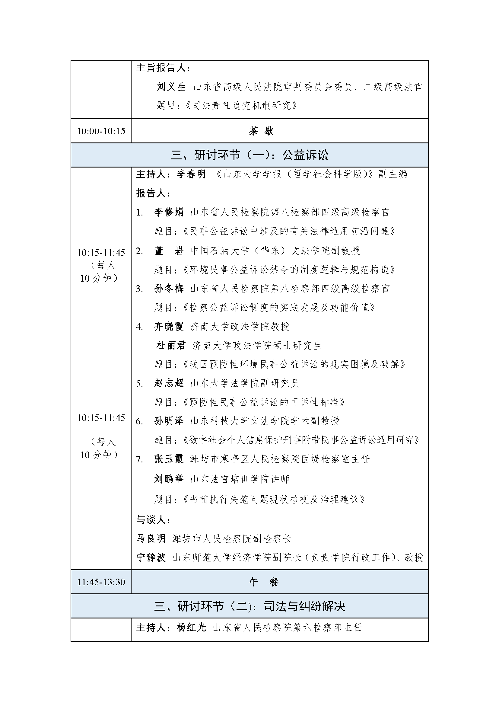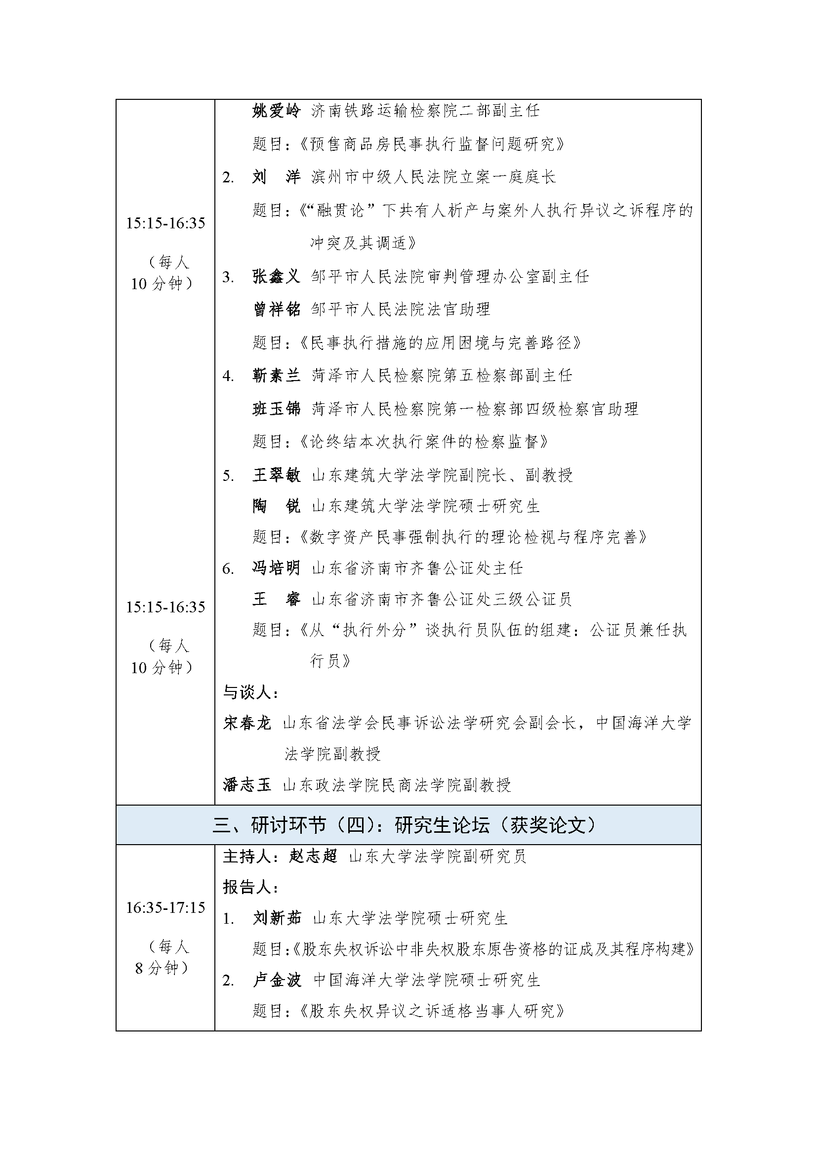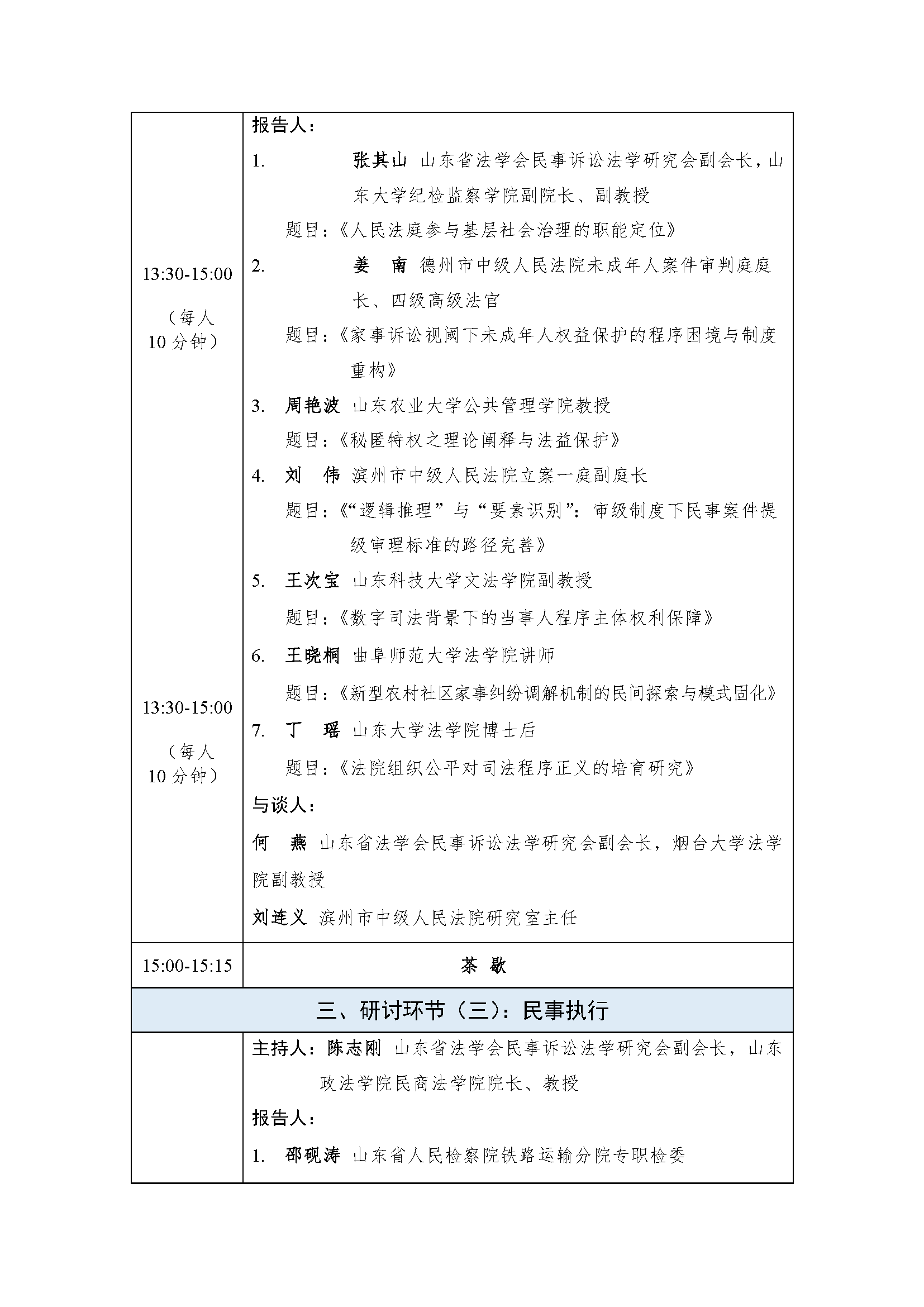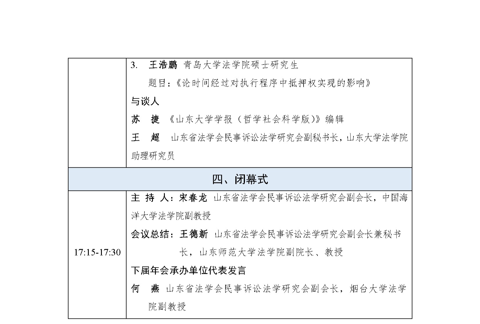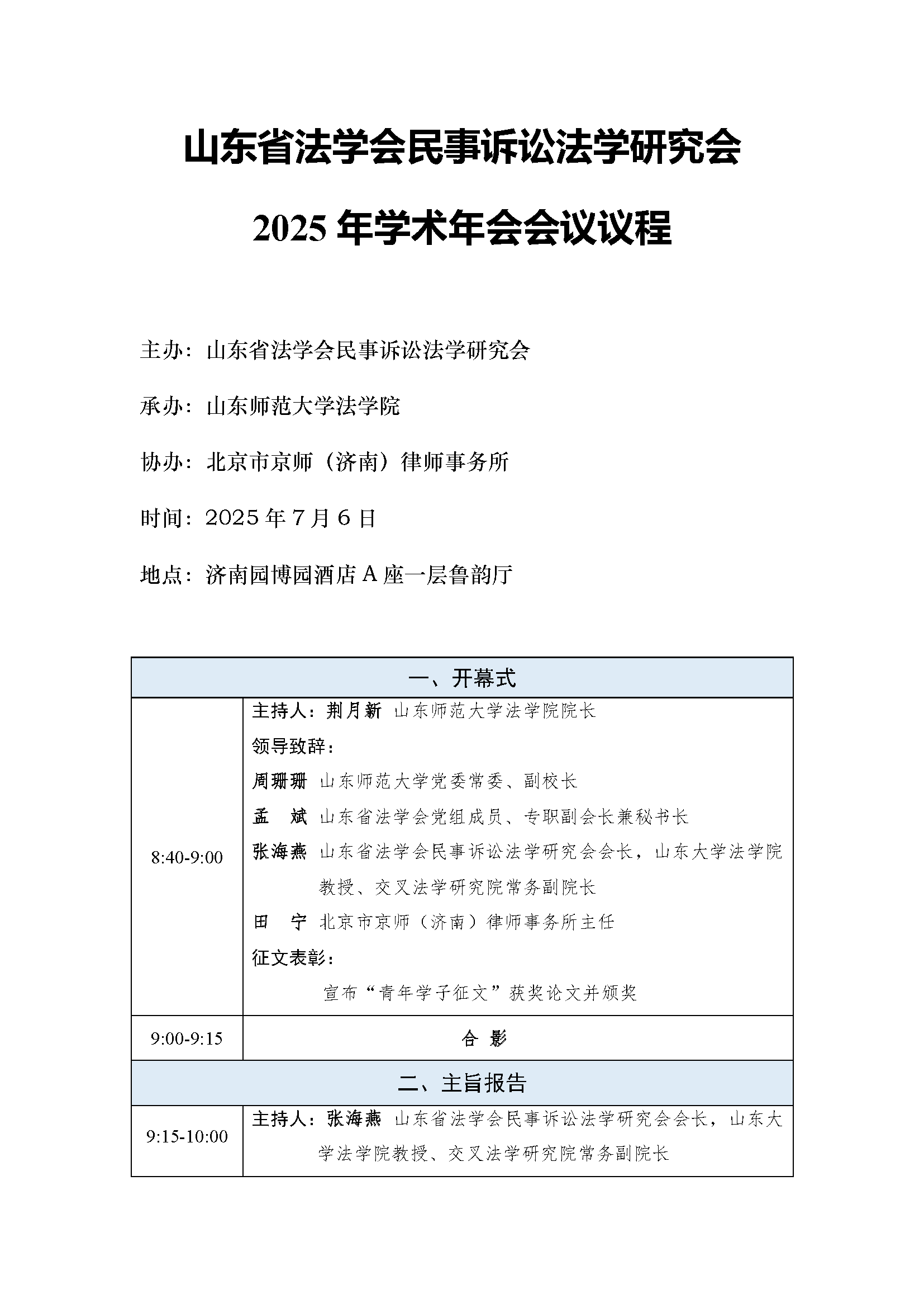 山东省法学会民事诉讼法学研究会2025年学术年会会议议程