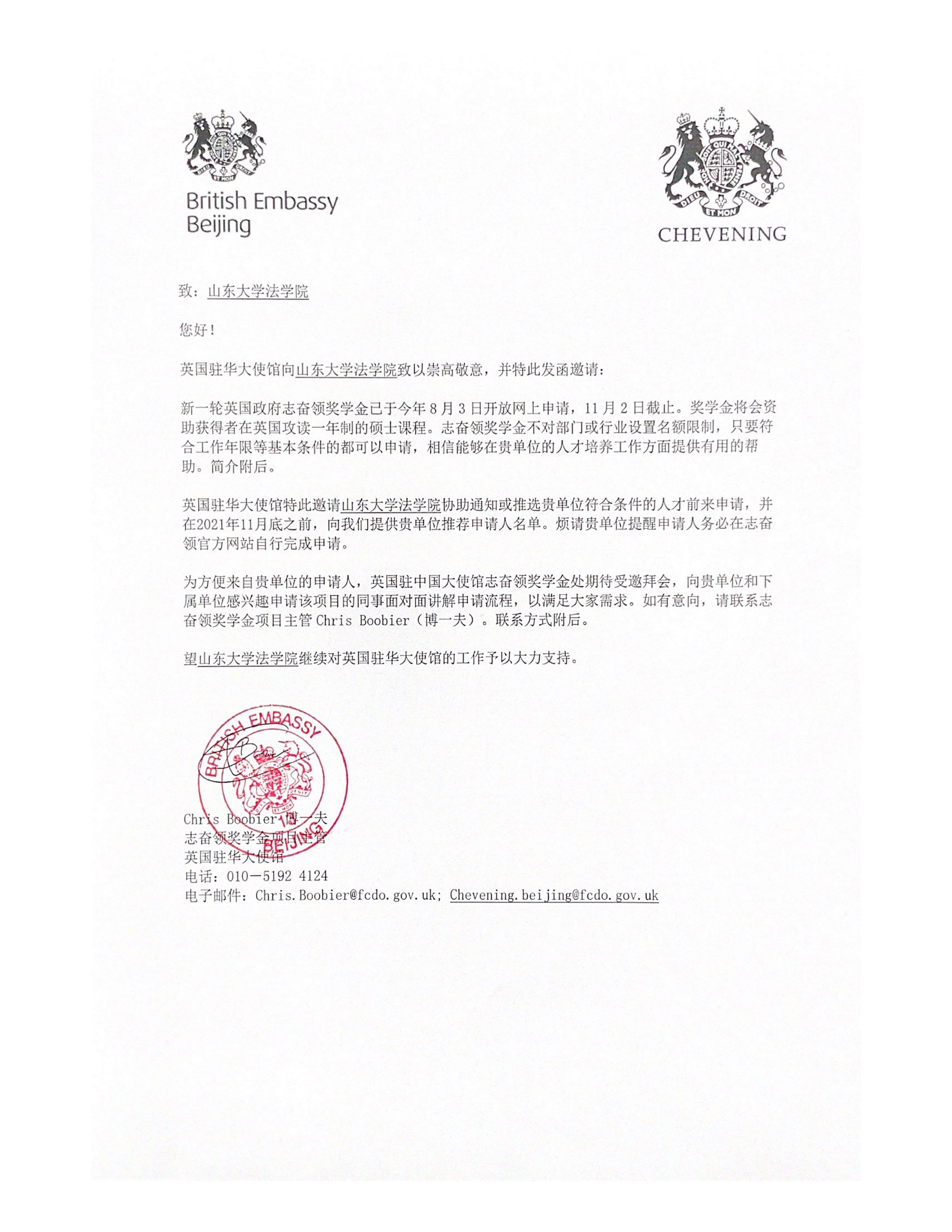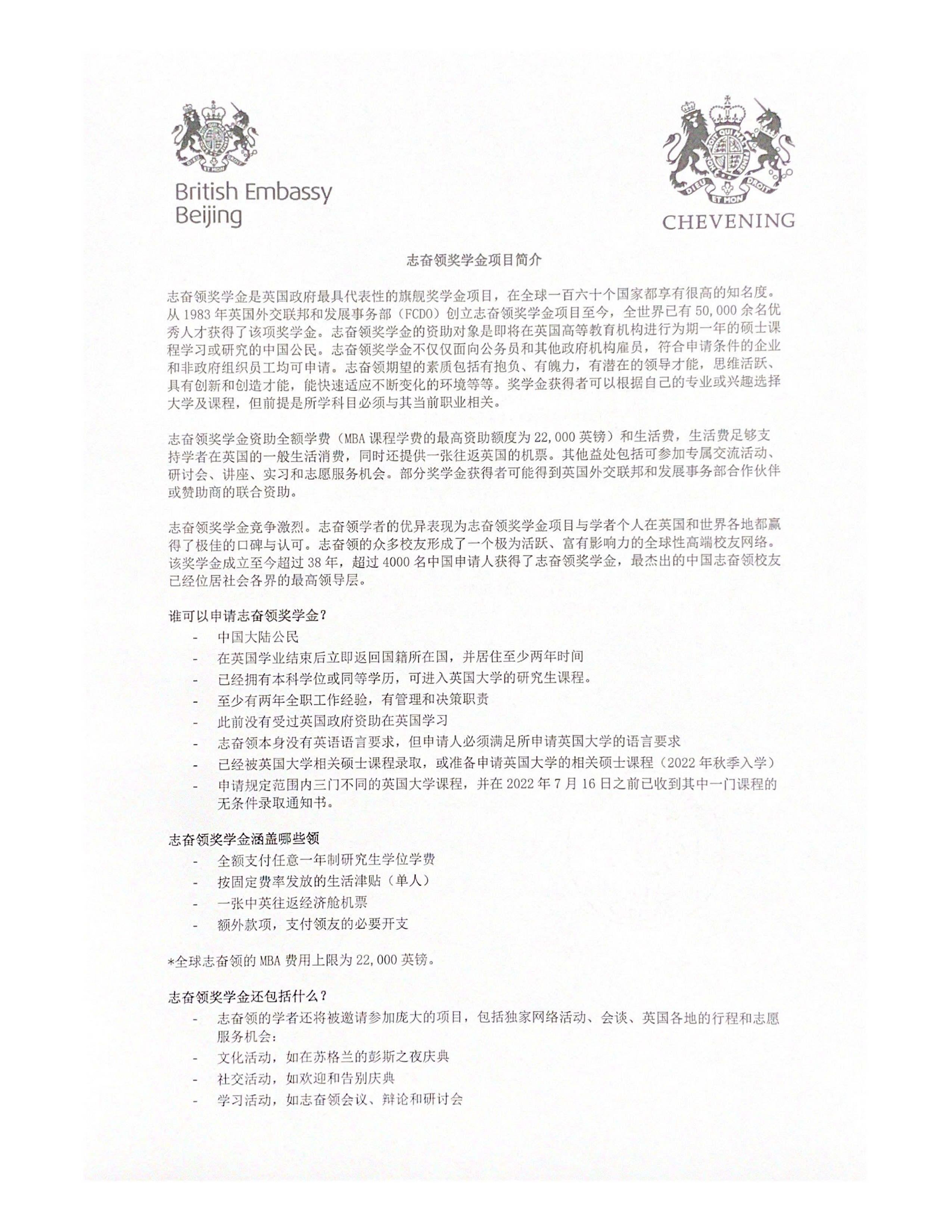 英国志奋领奖学金项目致taptap点点体育邀请函: