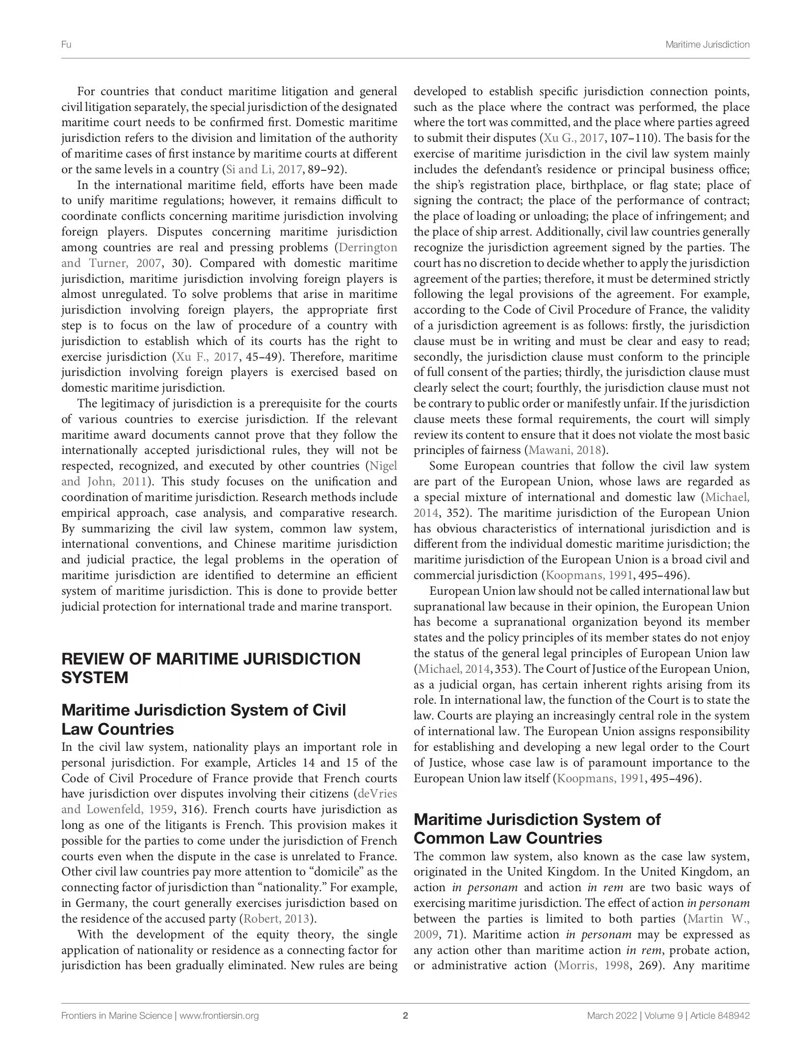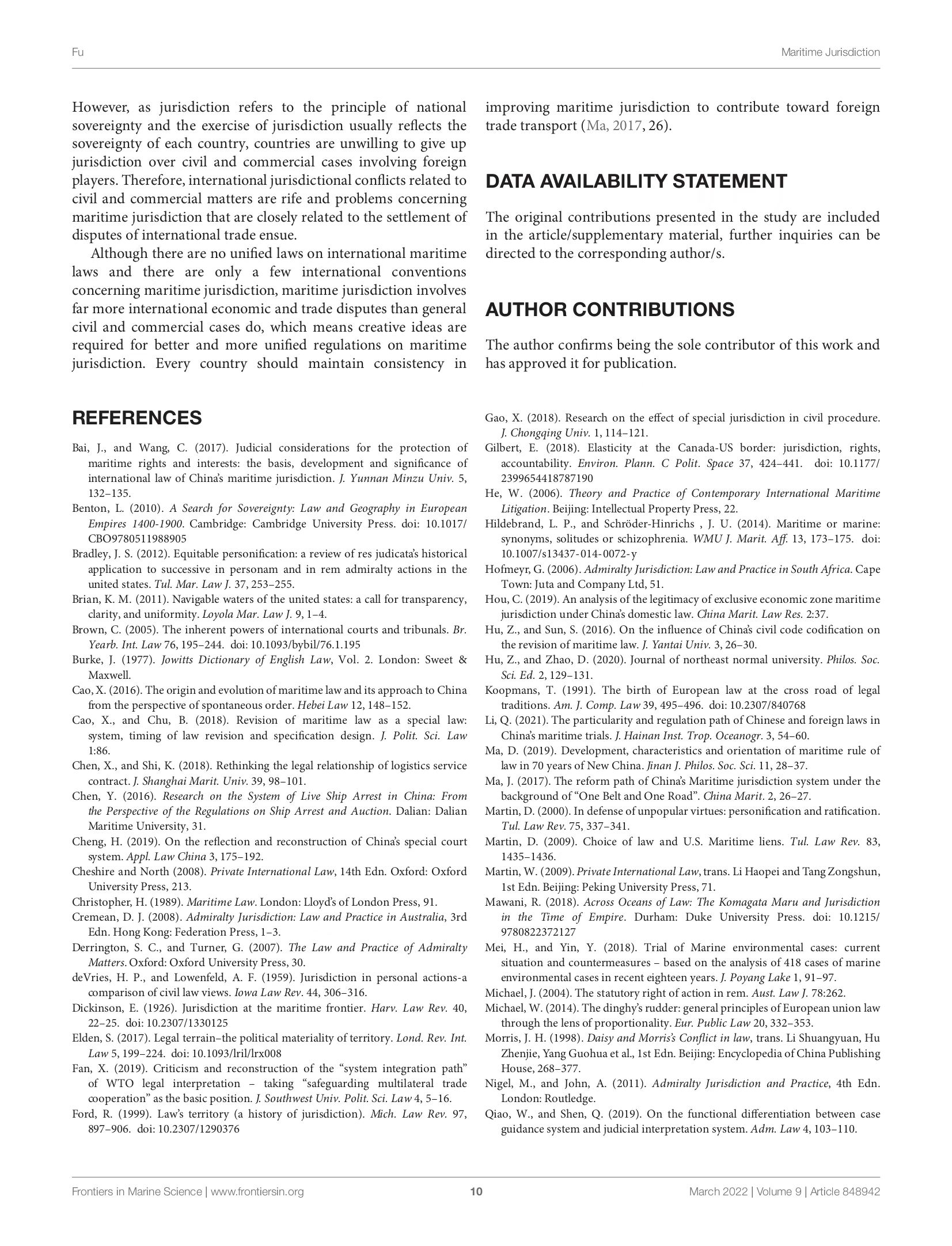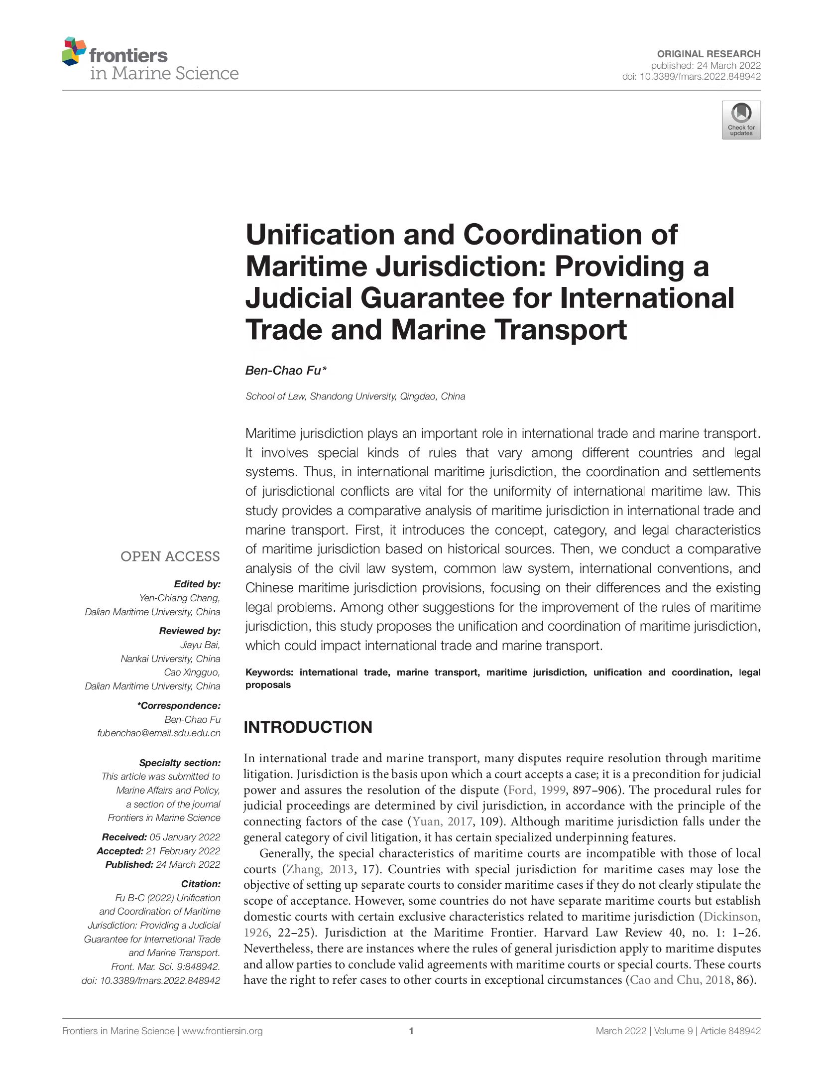 新著新论 | 付本超:Unification and Coordination of Maritime Jurisdiction: Providing a Judicial Guarantee for International Trade and Marine Transport