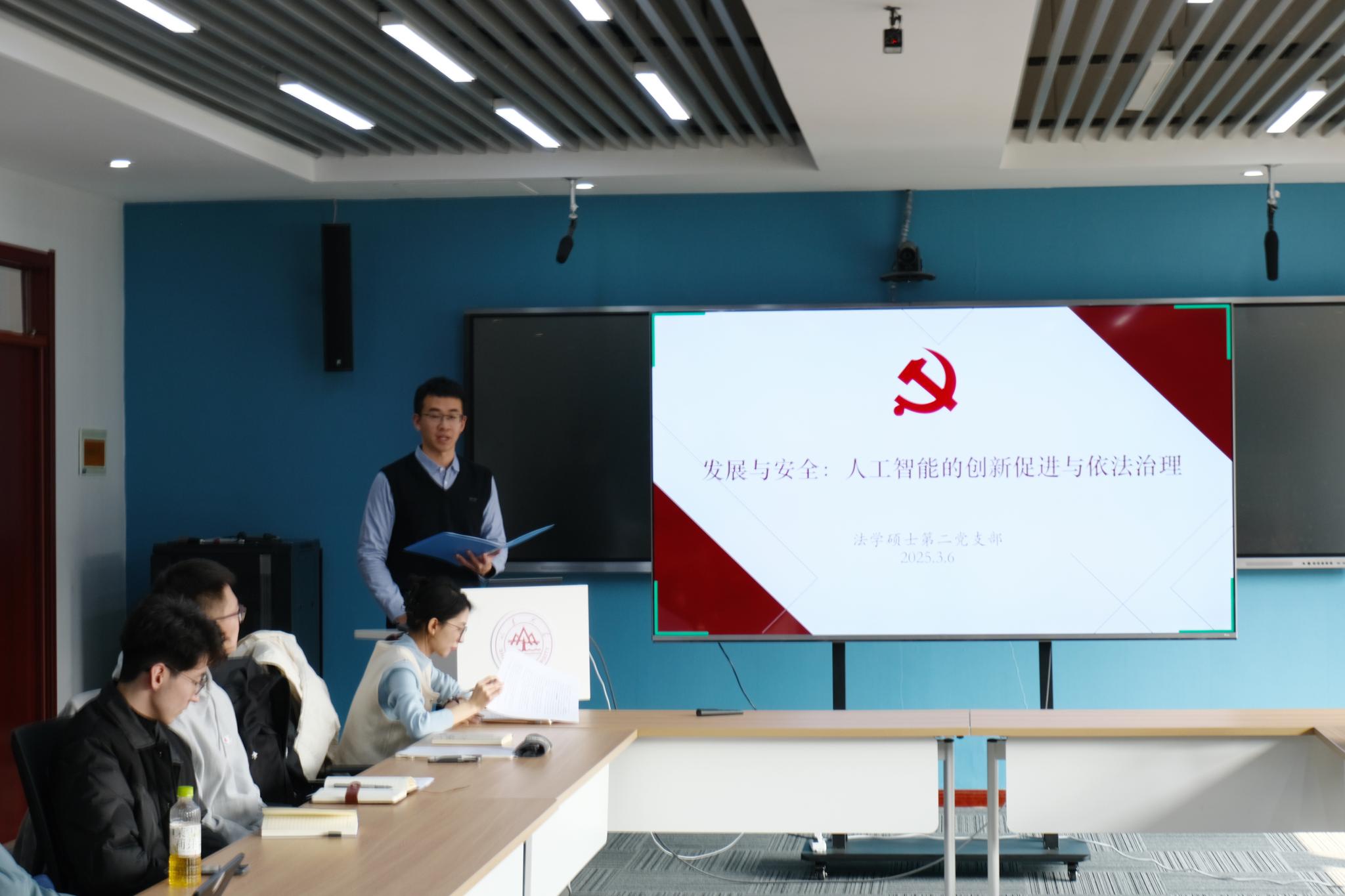 法学硕士第二党支部积极开展“党建+法‘智’赋能”品牌主题党日活动,旨在通过跨学科对话的形式,深入探讨法律与人工智能技术相结合的方法与边界,以党建引领科研方向,用科研成果反哺党建工作,促进党建与科研互融互促。