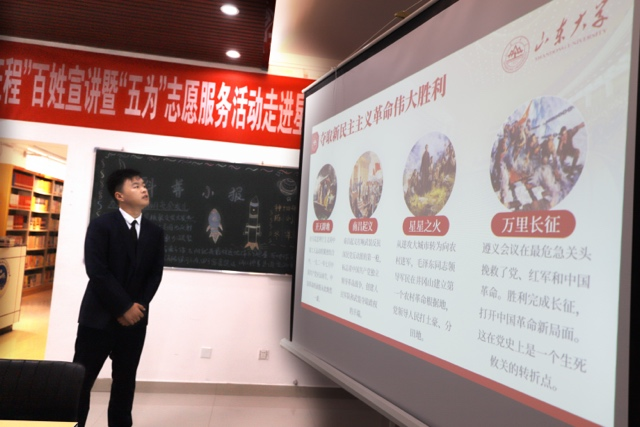 团队以线上线下双渠道宣讲的新形式,协同山东省滨州市多处基层社区与中小学校开展“喜迎二十大,奋进新征程”二十大理论政策宣讲活动。团队成员用青春的姿态向群众宣传党的政策理论,激励广大基层群众秉持初心,接续奋斗,与时代同心、同向、同行。团队获得团队暑期社会实践院级二等奖,推评校级优秀团队。