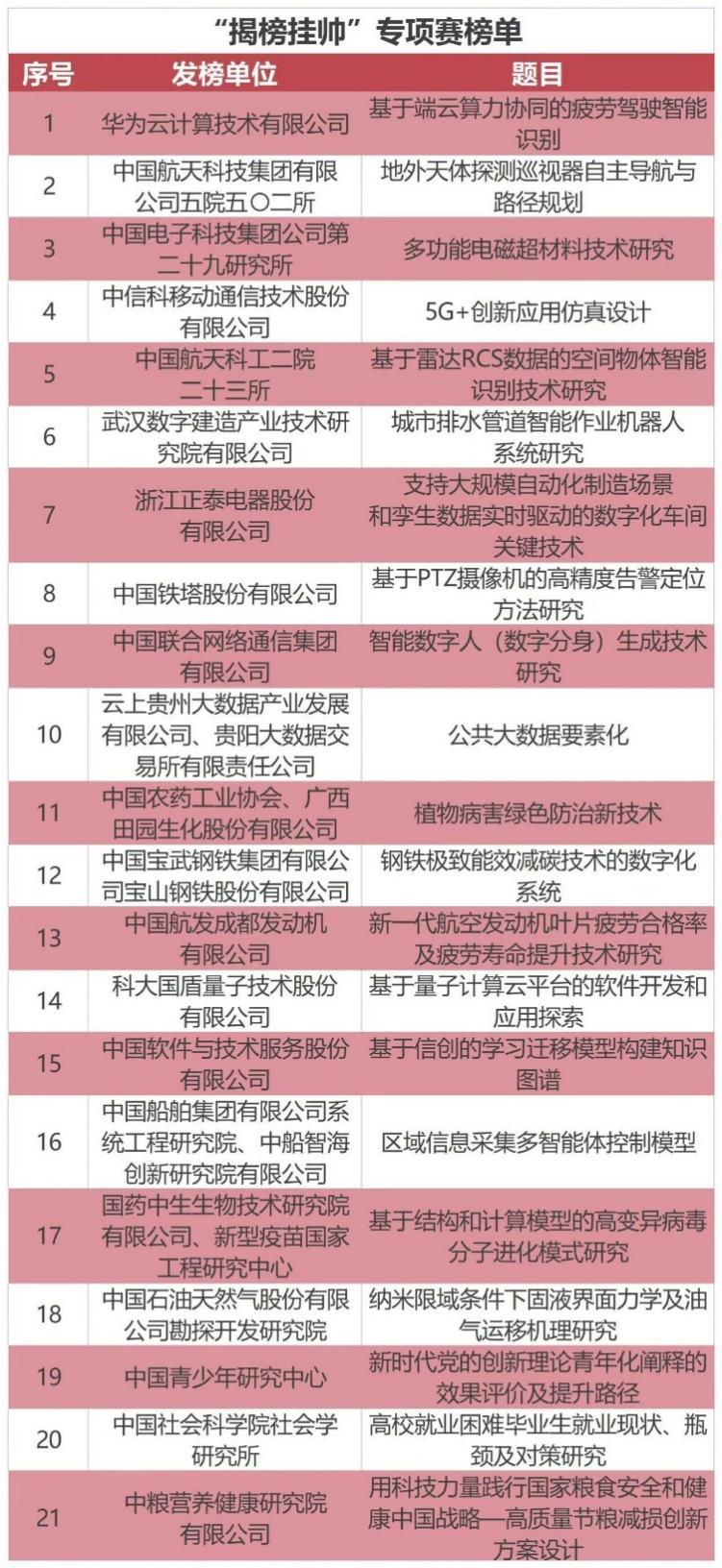 三、“揭榜挂帅”专项赛榜单