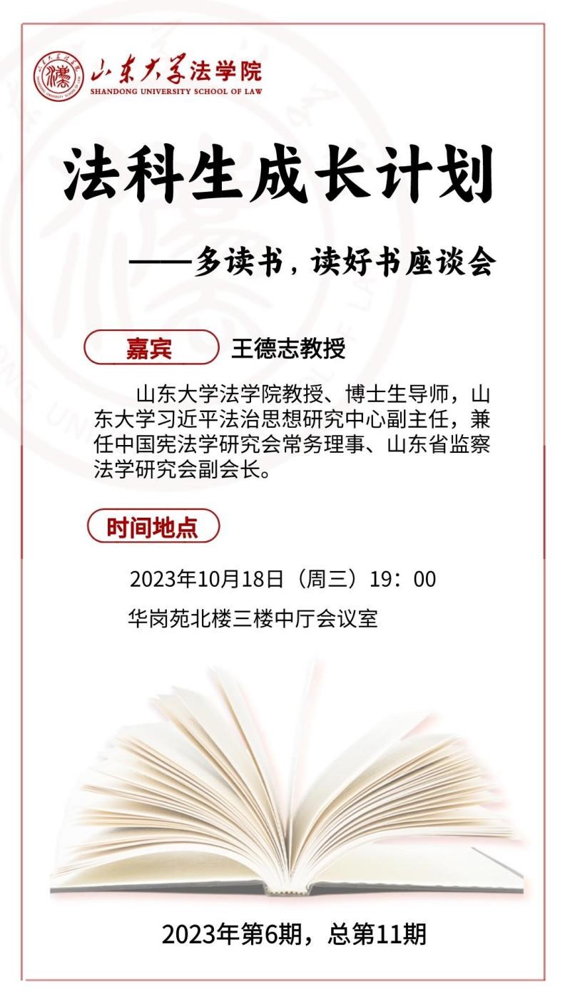 法者,天下之程式也,万事之仪表也。为学之道,莫先于穷理;穷理之要,必在于读书。唯有读好书,方能体会法学的奥妙,而谈及“多读书,读好书”,想必同学们都会有各自的疑问。本期座谈会有幸邀请到王德志老师,与同学们交流探讨关于“多读书,读好书”的问题。欢迎同学们积极参与!