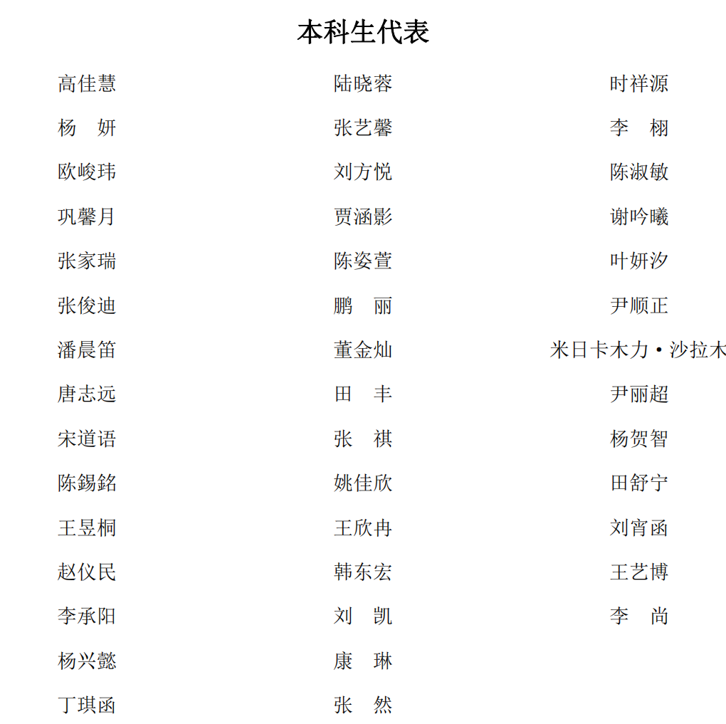 参照《中华全国学生联合会章程》,根据《taptap点点体育院级学生(研究生)代表大会工作细则》的有关规定,现将taptap点点体育第四十二次学生代表大会、第二十六次研究生代表大会代表名单公示如下: