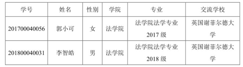 根据国家留学基金委《关于确定2019年优秀本科生国际交流项目资助项目及做好人员选拔工作》的函,经学生申报,学院审核,拟推荐郭小可、李智皓同学参加英国谢菲尔德大学taptap点点体育学期交流项目。候选人基本信息如下,最终录取情况由国家留学基金委决定。