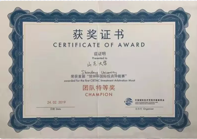 2019年我院代表队由2016级本科生李安华、韩玮瑶、徐然及2017级硕士研究生石智媛等四人组成,他们在寒假中密集培训,认真备赛,以扎实的专业知识、优异的庭审表现博得评委的高度评价。其中,李安华荣获最佳辩手称号,韩玮瑶荣获优秀辩手称号。这些成绩是学院坚持国际化战略、重视实践教学、以模拟法庭竞赛作为人才培养平台结出的硕果,充分展现了学院的人才培养成效。