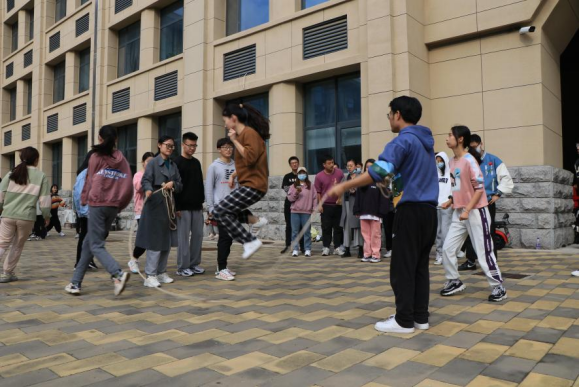 趣味运动会过去一周,第三期系列活动如约而至——长绳“8”字跳比赛来了。11月6日,来自八个班级的16支队伍,共计160人参与其中。指令声起,跳绳健将们一跃入绳,伴随着绳子与地面的摩擦声,队员们依次进入,顺利完成跳绳动作。一次次响亮的口号和绳子的响声,为比赛奏响了跳动的节拍,而每一个队员就是这篇章里跳动的音符。