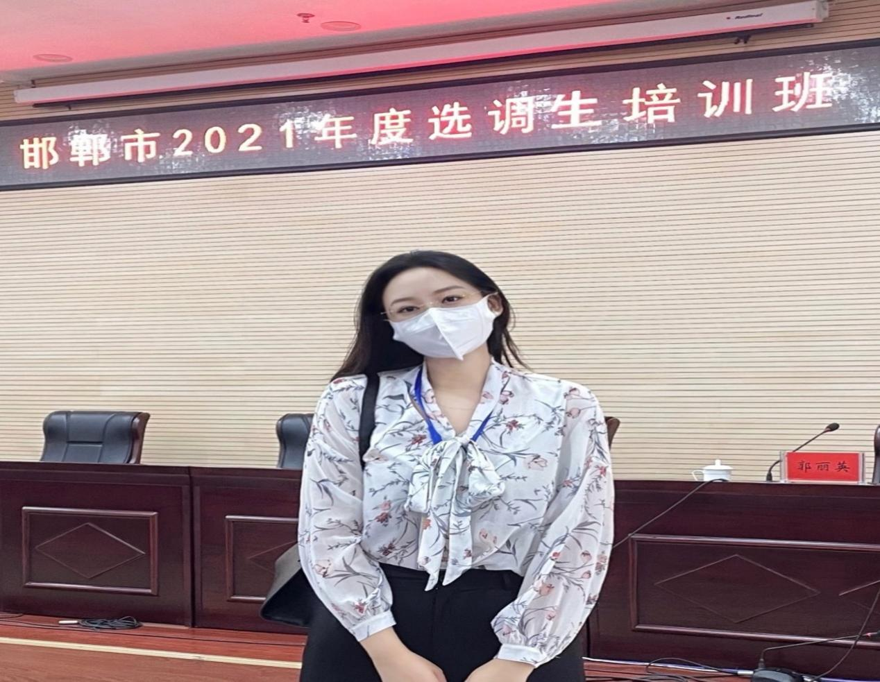 杨晴,2021届法学专业毕业生,在校期间曾任从文书院学生会办公室干事,获社会工作先进个人等荣誉称号,通过2021年河北省定向选调考试招录到邯郸市工作。