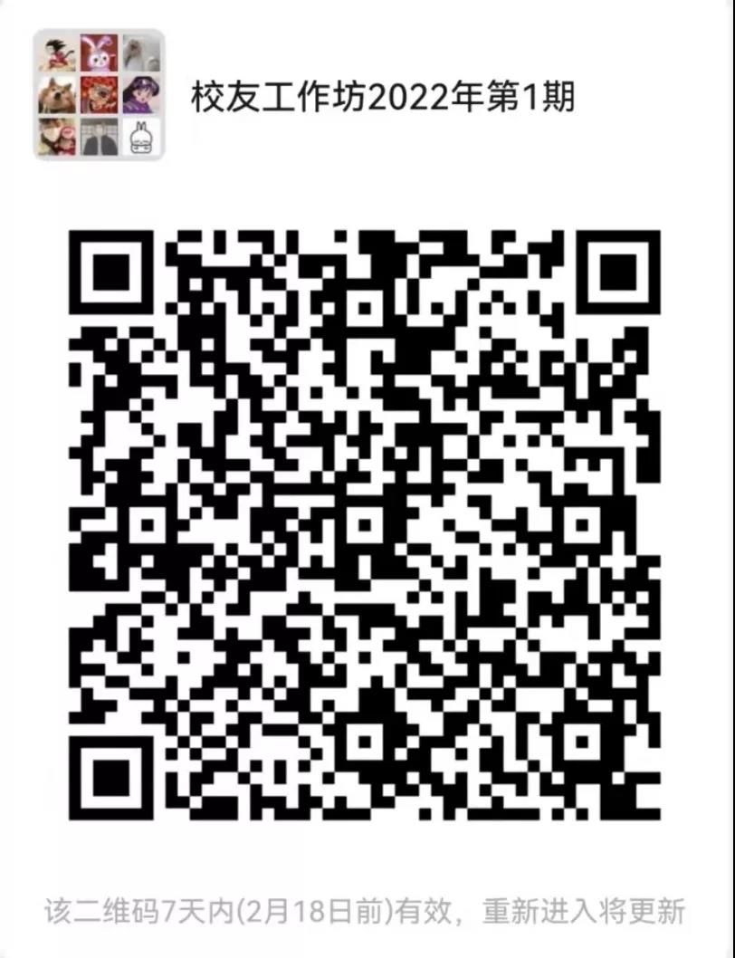有意向参与本次校友工作坊的同学,请扫描下方小程序二维码进行报名。报名开始时间为2月11日22:00,因采取线上方式,本次报名不限制人数。